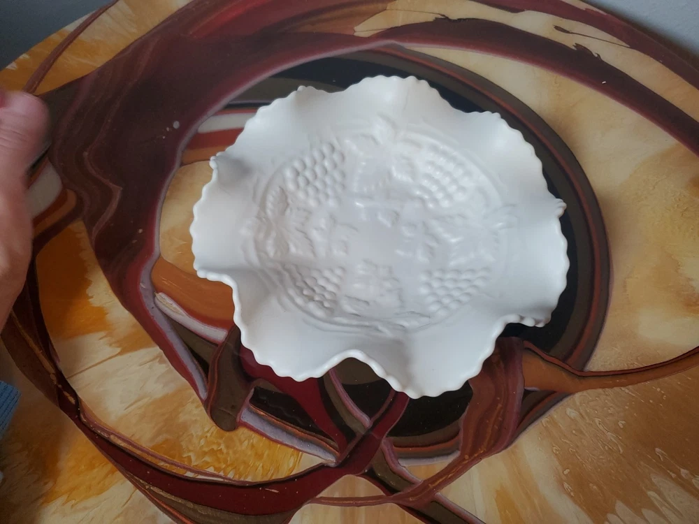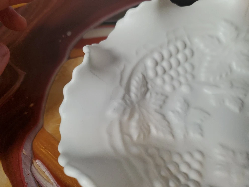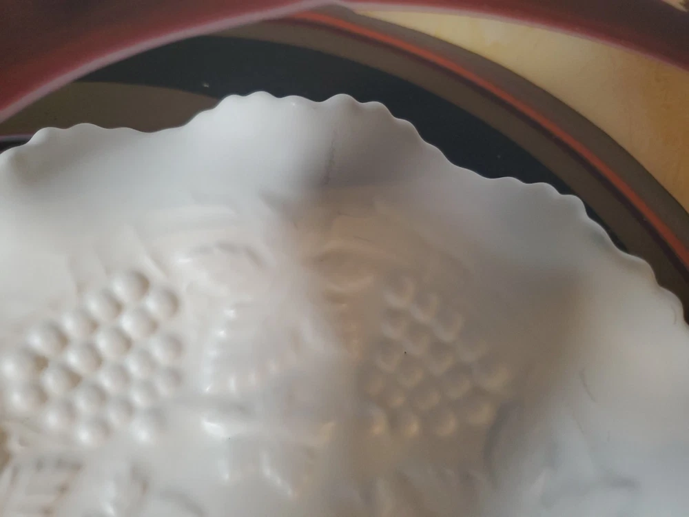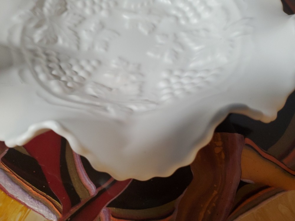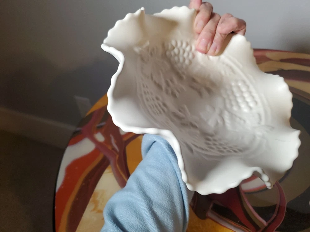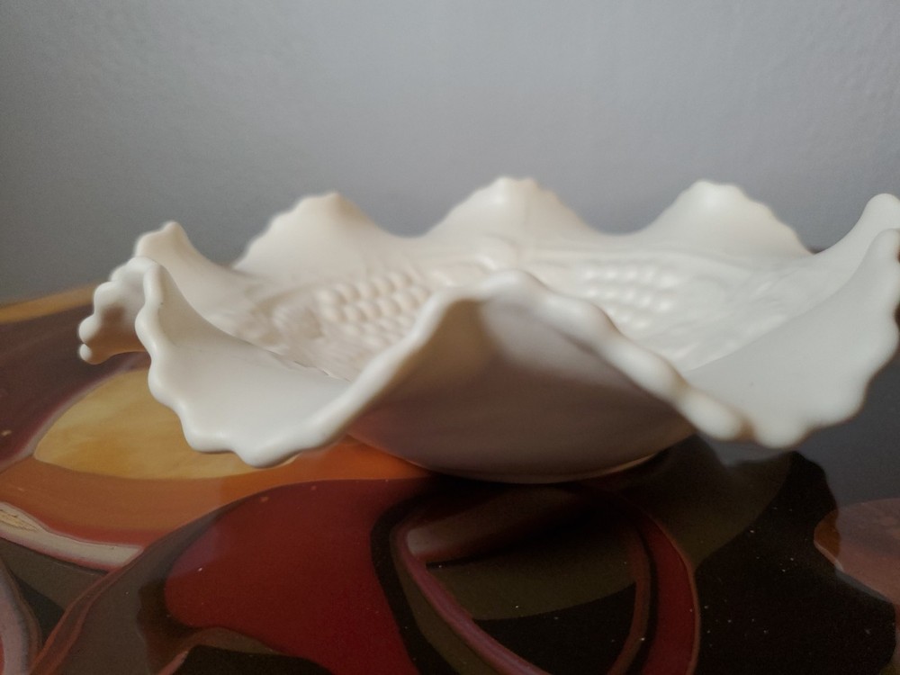 Type:Candy DishOriginal/Licensed Reproduction:OriginalBrand:UnmarkedMaterial:GlassVintage:YesNumber of Items in Set:1Theme:leavesPattern:FloralNumber of Compartments:1Shape:RoundFeatures:DecorativeColor:White
