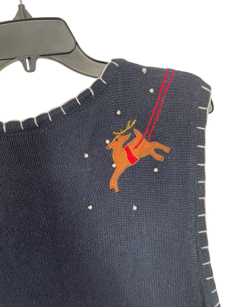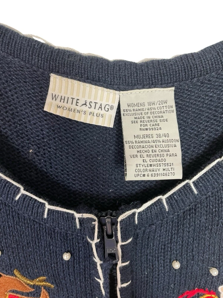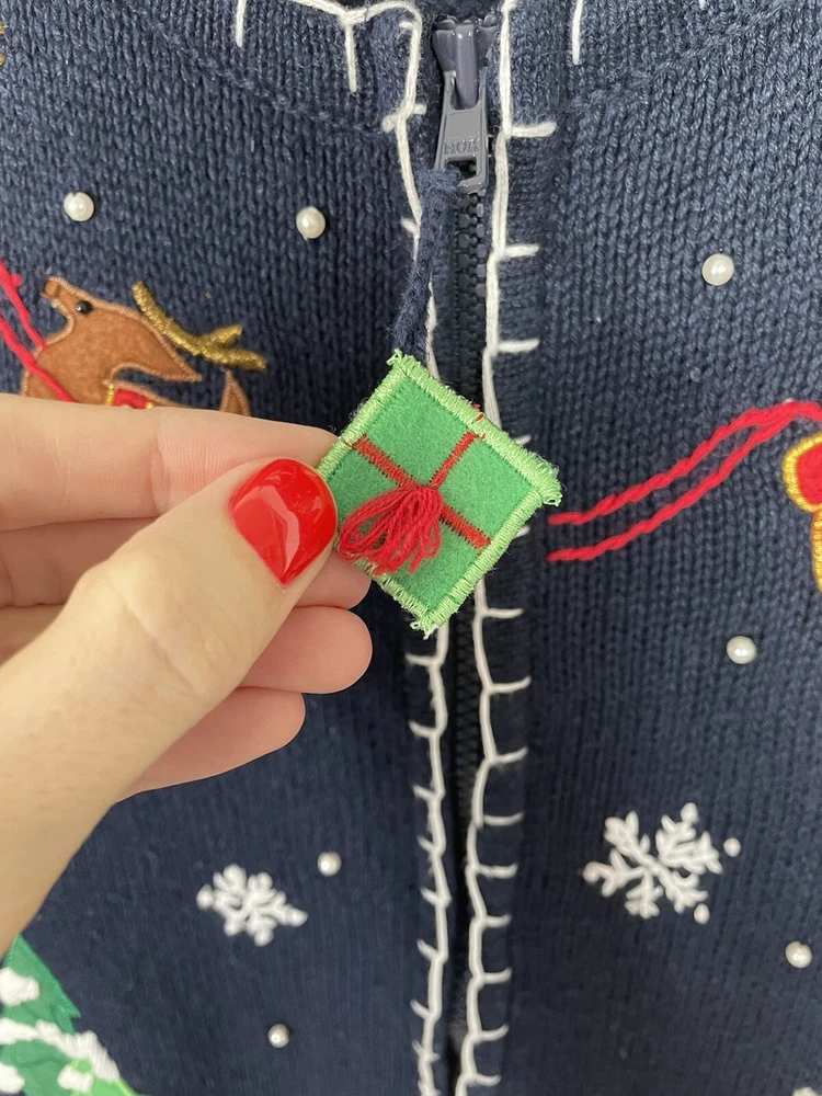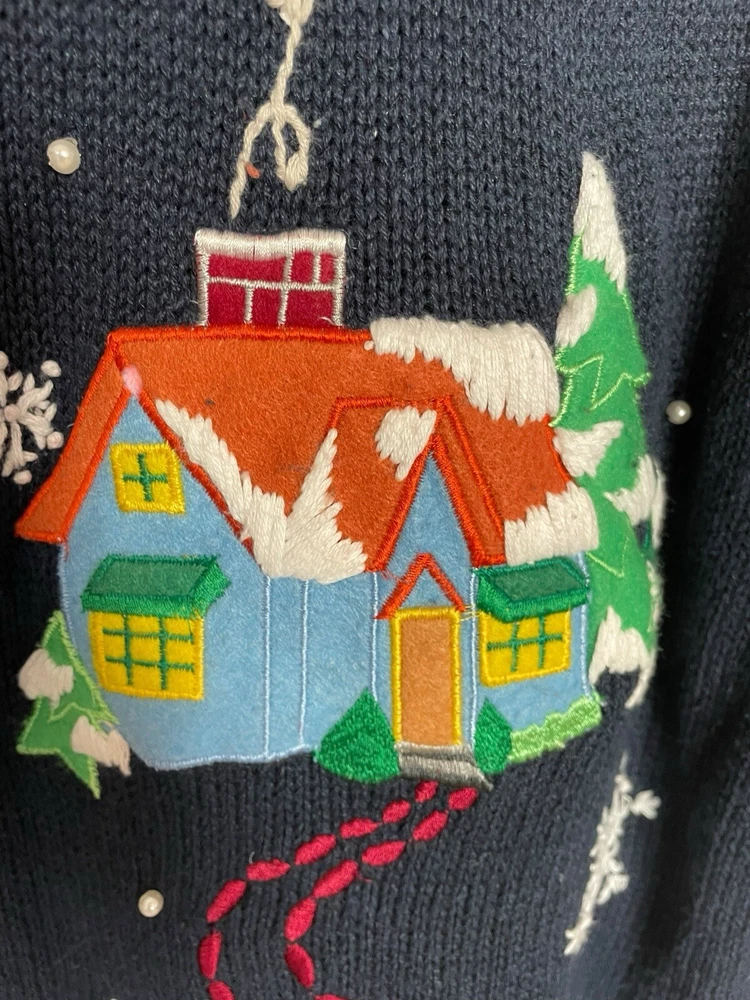 Good pre-owned condition. Just some light pilling. -Ramie & Cotton -Stretchy -Zipper closure. -Navy blue with multicolored accents. -Beaded with faux pearls. -Embroidery and felt accents Armpit to armpit- 22” Shoulder to hem- 29” *Colors may be slightly different than what appears due to different screens and lighting. Please look closely at pics. I do not ship out on Saturdays or Sundays. Let me know if you have any questions! Feel free to send offers:)