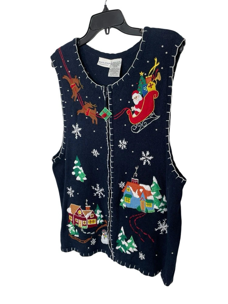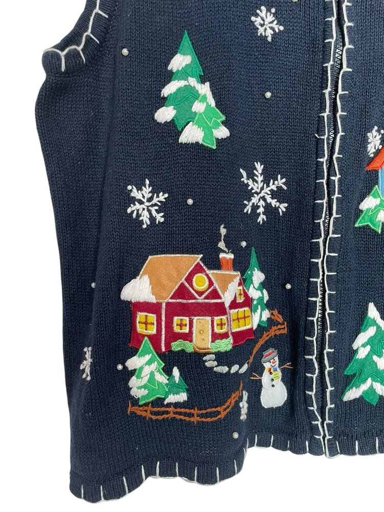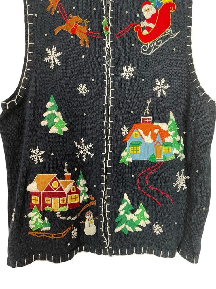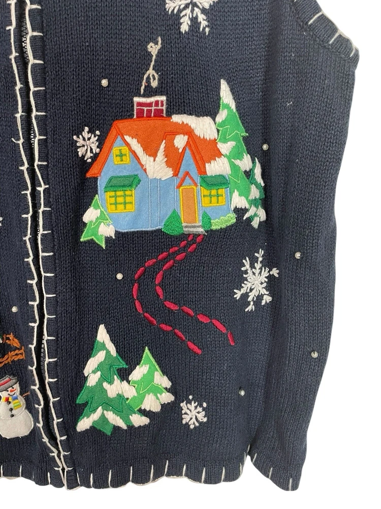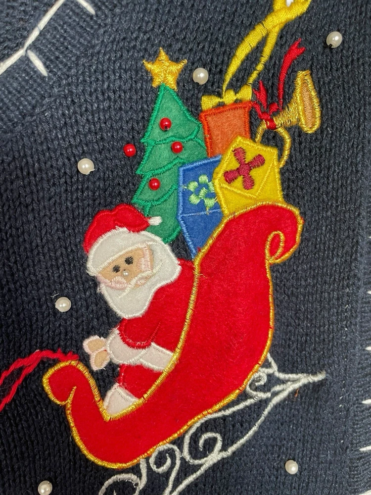 Good pre-owned condition. Just some light pilling. -Ramie & Cotton -Stretchy -Zipper closure. -Navy blue with multicolored accents. -Beaded with faux pearls. -Embroidery and felt accents Armpit to armpit- 22” Shoulder to hem- 29” *Colors may be slightly different than what appears due to different screens and lighting. Please look closely at pics. I do not ship out on Saturdays or Sundays. Let me know if you have any questions! Feel free to send offers:)