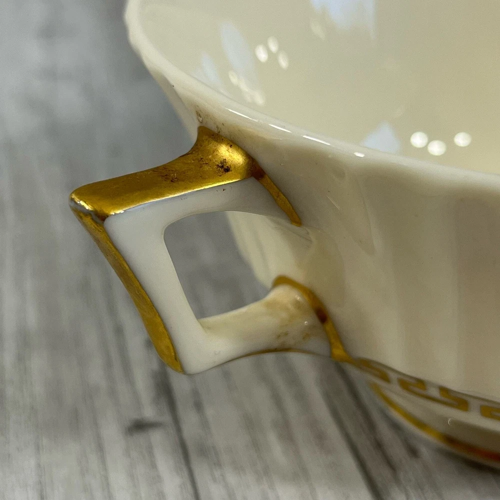 Vintage White Textured Gold Trim Tea Cup No Markings Some of the gold trim has worn off See pictures for details and measurements Measurements are approximate