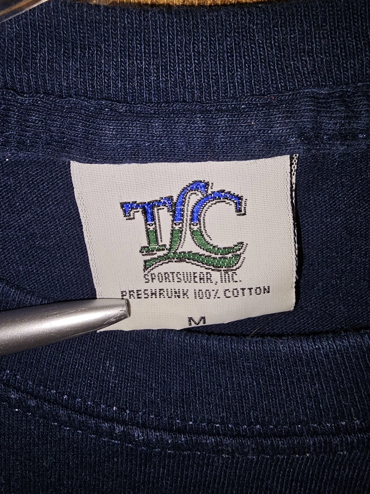 Show your love for the Whitman Blues with this vintage college t-shirt from TLC Sportswear. Made in Mexico, this medium-sized shirt features a bold blue color with the official NCAA logo of the Whitman Blues basketball team. Whether you're a student, alumni, or just a fan of the team, this shirt is perfect for showing your support during the regular season and beyond. With its comfortable fit and classic design, this shirt is a must-have for any college basketball fan. The shirt is made of high-quality materials to ensure its durability, so you can wear it season after season. Don't miss out on the chance to own a piece of college basketball history with this Whitman College t-shirt.