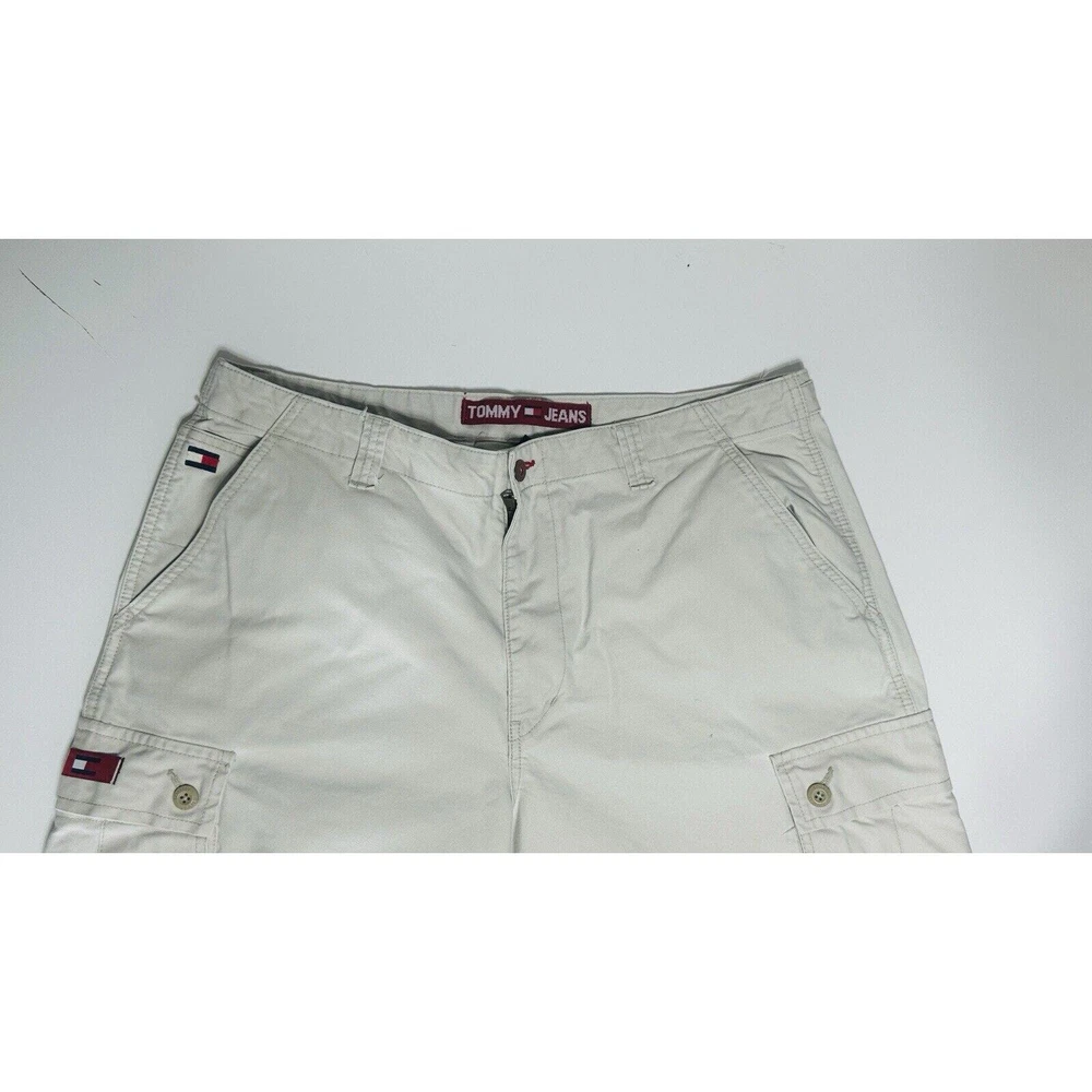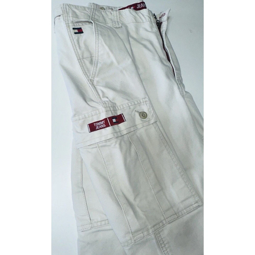 Rise: Mid (10-12 in) Inseam: 30 in Handmade: No Department: Men Pocket Type: 5-Pocket Design, Cargo Pocket gtin13: Does not apply Waist Size: 42 in Fabric Type: Canvas Suspender Buttons/Belt Loops: Belt Loops Vintage: Yes Type: Pants Color: Beige Features: Comfort, Easy Care, Pockets Product Line: Tommy Jeans Material: Cotton Brand: Tommy Hilfiger Pattern: Solid UPC: Does not apply Garment Care: Machine Washable Closure: Zip Size: 38 Size Type: Regular Leg Style: Straight Season: Fall, Spring, Summer, Winter Front Type: Flat Front Theme: 90s, Grunge, Skate, Skating, Vintage, Cargo, Wide, Wide Leg, Loose, Baggy, Pockets Fit: Relaxed Occasion: Business, Casual, Workwear Accents: Logo, Zipper Style: Cargo
