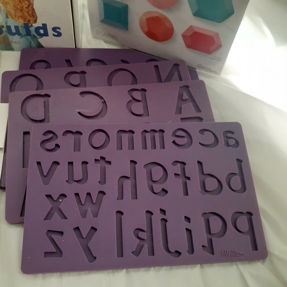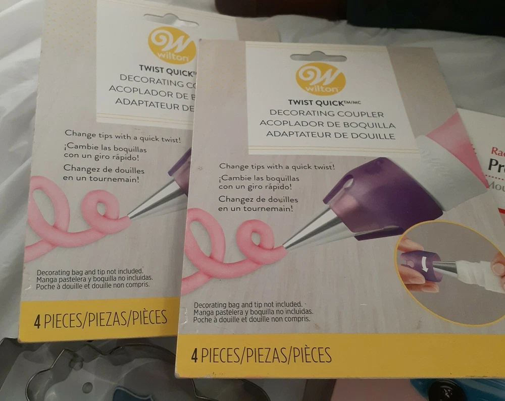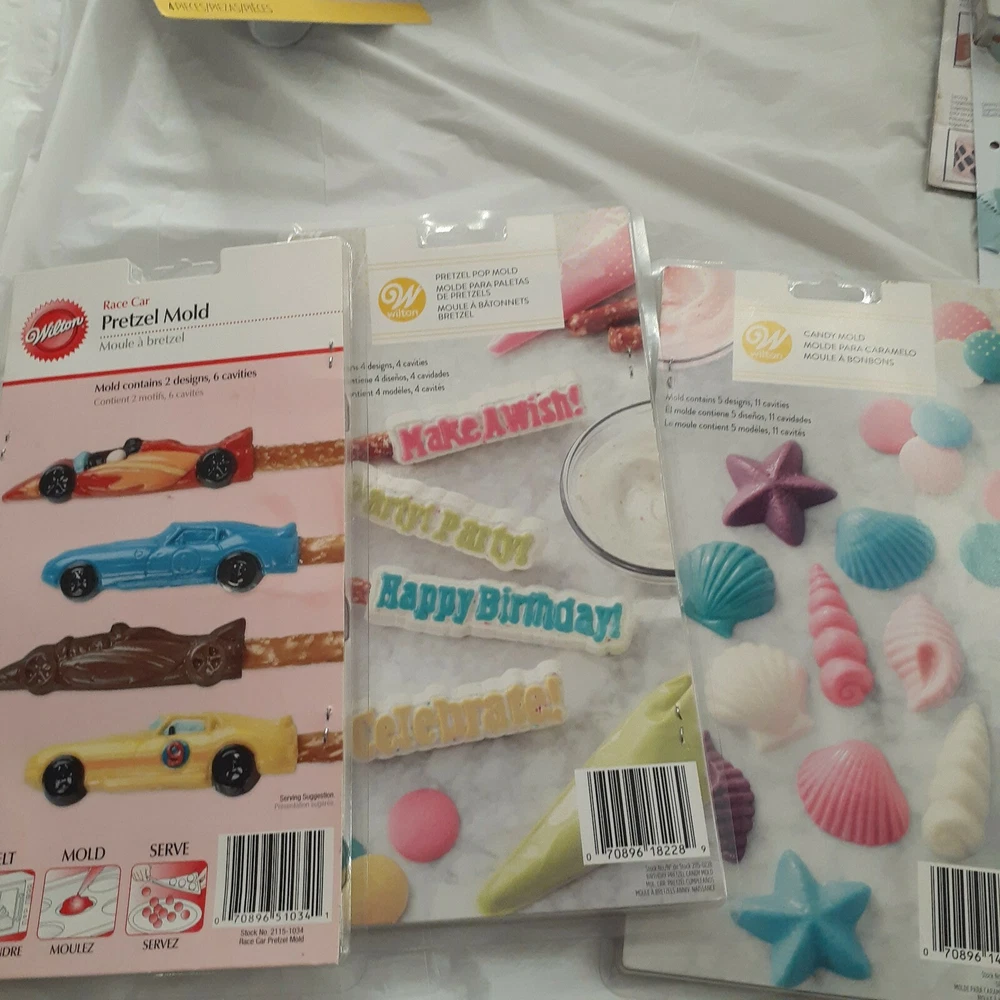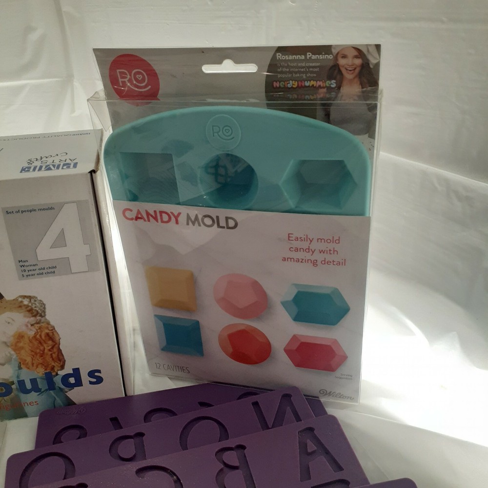 Cake Decorating Tool Kit Wilton Leveler Molds Piping Bags Fondant Cookie Cutter. 75 New Wilton Piping Bags 2 Used Wilton Baking Strips 1 New/Used PME People Moulds (4) Mom Dad 2 Children 1 used Wilton A-Z Molds 4 pc Mold set 1 New Rosanna Precision Candy Mold 1 New Wilton Precision Pattern 1 New Wilton Plaque Cut Out Set 3pc 2 New Wilton twist Quick Decorating Coupler 1 Used Wilton Rock Mold 1 Used Wilton Wood Mold 1 Used Wilton Cake Leveler 1 New Wilton Sea Shell Candy Mold 1 New Wilton Race Cars Pretzal Mold 1 New Wilton Happy BDay Pretzel Mold 1 Used Wilton Drizzle Bottle 1 New Case of 6 Christmas Molds