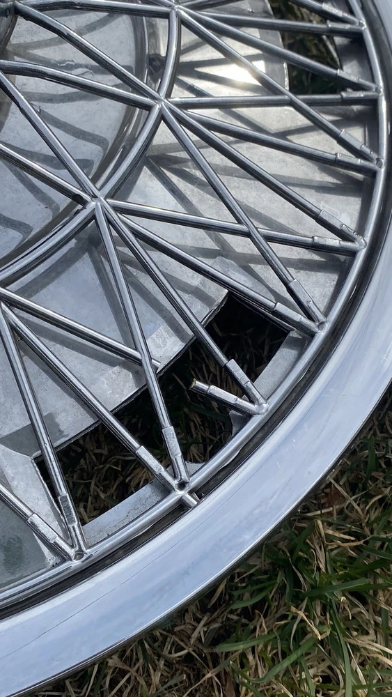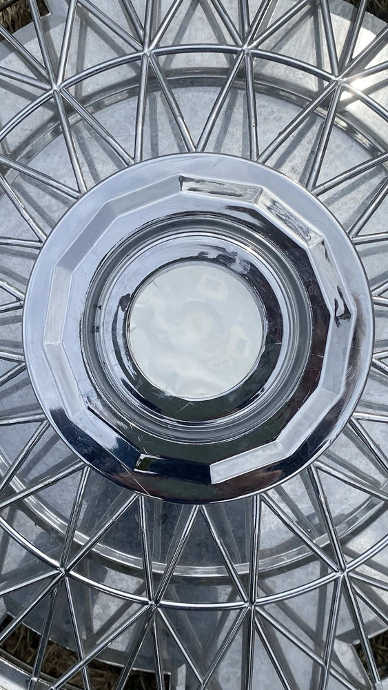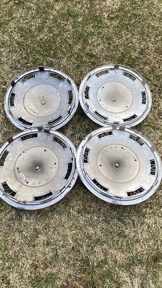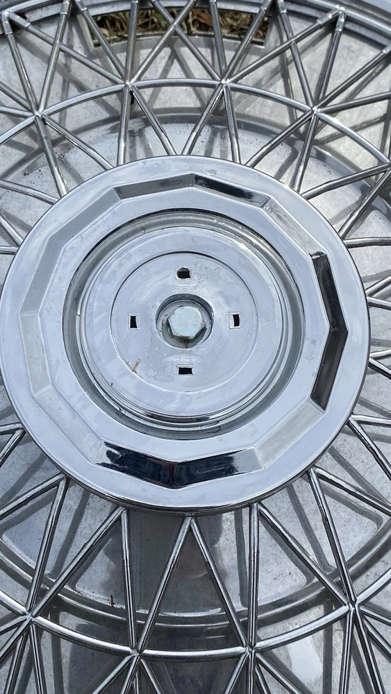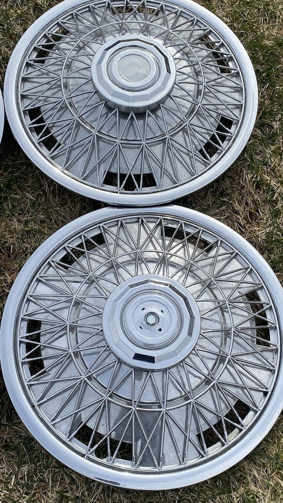 Vintage 1970's Wire Spoke Hubcap Wheel Covers SET of 4 $$60 15 Inch really good condition vintage spoked hubcaps. Made of mostly plastic the mounts are metal. There is one or two damage spokes so please Check out the pics