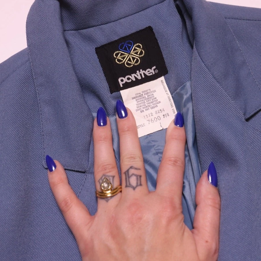 Vintage two-piece pant suit set by Panther in a beautiful muted blue tone. Features a structured blazer with a tailored fit and matching high-waisted trousers for a clean, polished silhouette. Details: Brand: Panther Style: 2-piece suit set (blazer + pants) Color: Dusty powder blue Blazer: tailored fit, front button closure, pockets Pants: high rise, straight leg Lightweight structured fabric Measurements (approx): Waist: 13” flat (26” waist) Inseam: 31” Pit to pit (blazer): 18” Sleeve length: 16” Fits approximately like a modern Small (please refer to measurements) Condition: Good vintage condition vintage suit set, womens blazer set, pant suit, 90s minimal, office core, quiet luxury, tailored set, vintage tailoring, minimalist outfit, model off duty, business casual, clean girl aesthetic, workwear vintage, capsule wardrobe