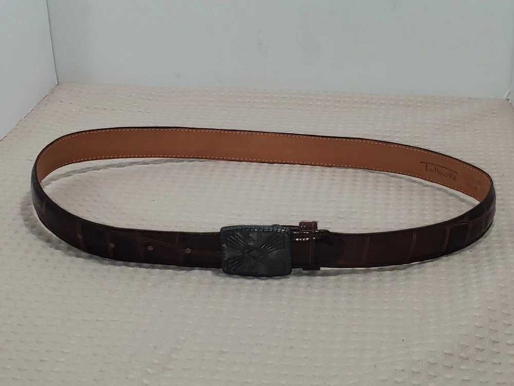 Brand:TalbottDepartment:WomenVintage:Yesgtin13:Does not applySize:MAccents:BuckleCountry/Region of Manufacture:United StatesStyle:Adjustable BeltMaterial:LeatherTheme:FlowerColor:BrownType:BeltUPC:Does not apply
