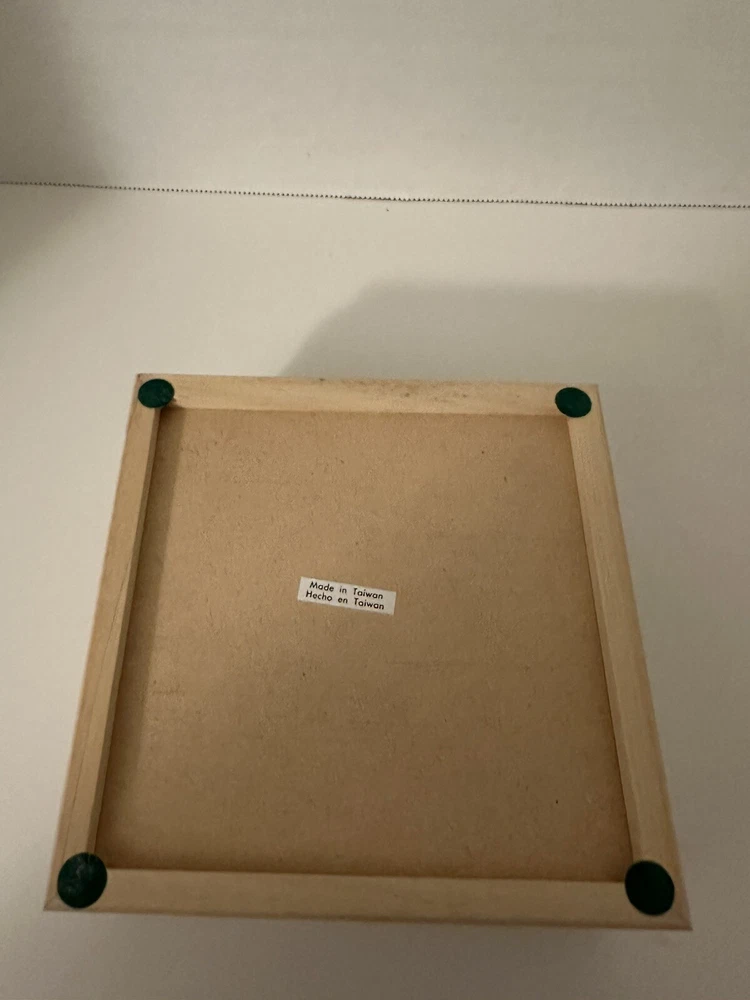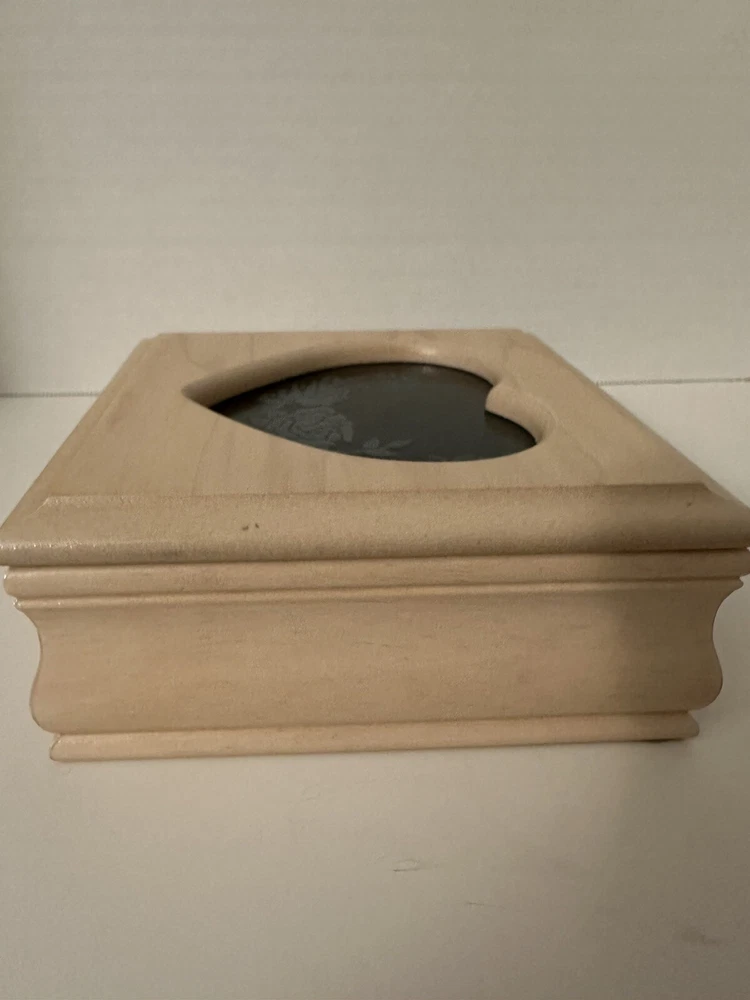 Vintage Wood Jewelry Box Heart Etched Rose Glass Lid