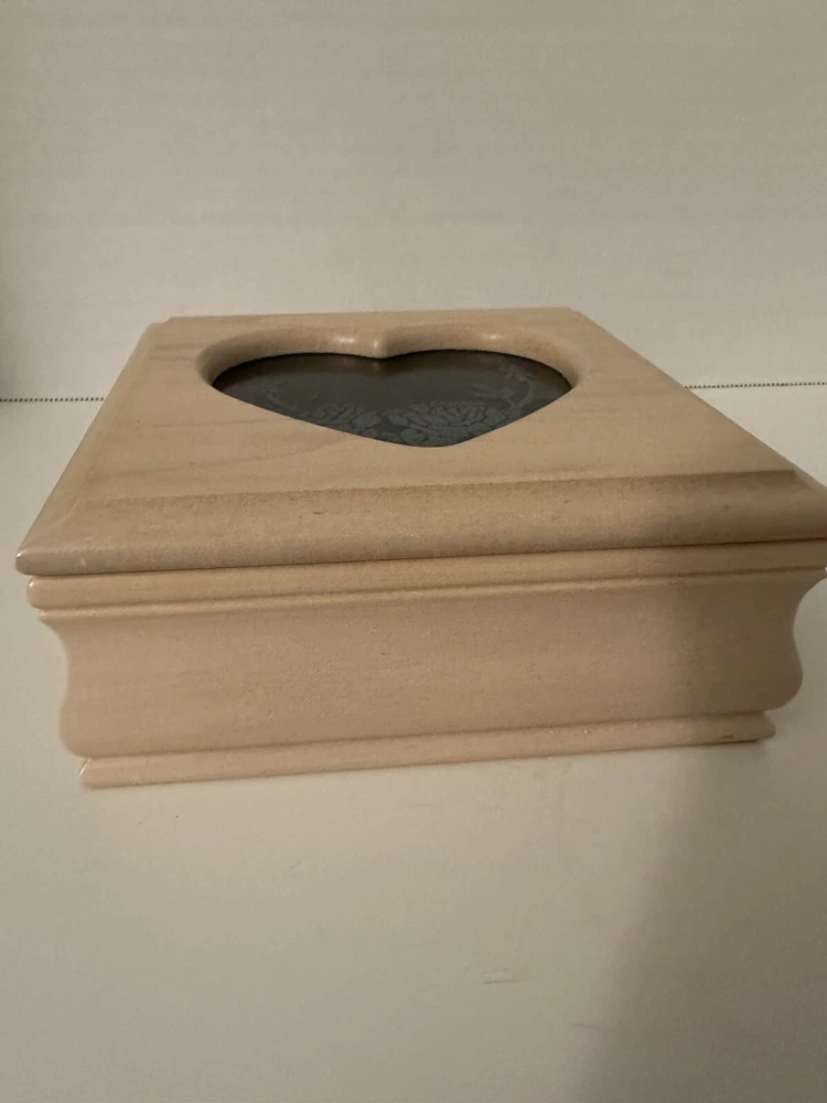 Vintage Wooden Jewlery/Trinket Box, With Glass Heart Shape & Roses On Lid.