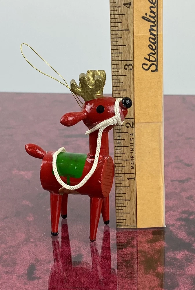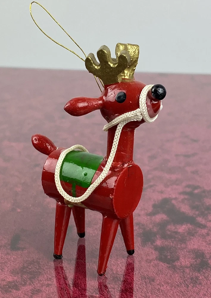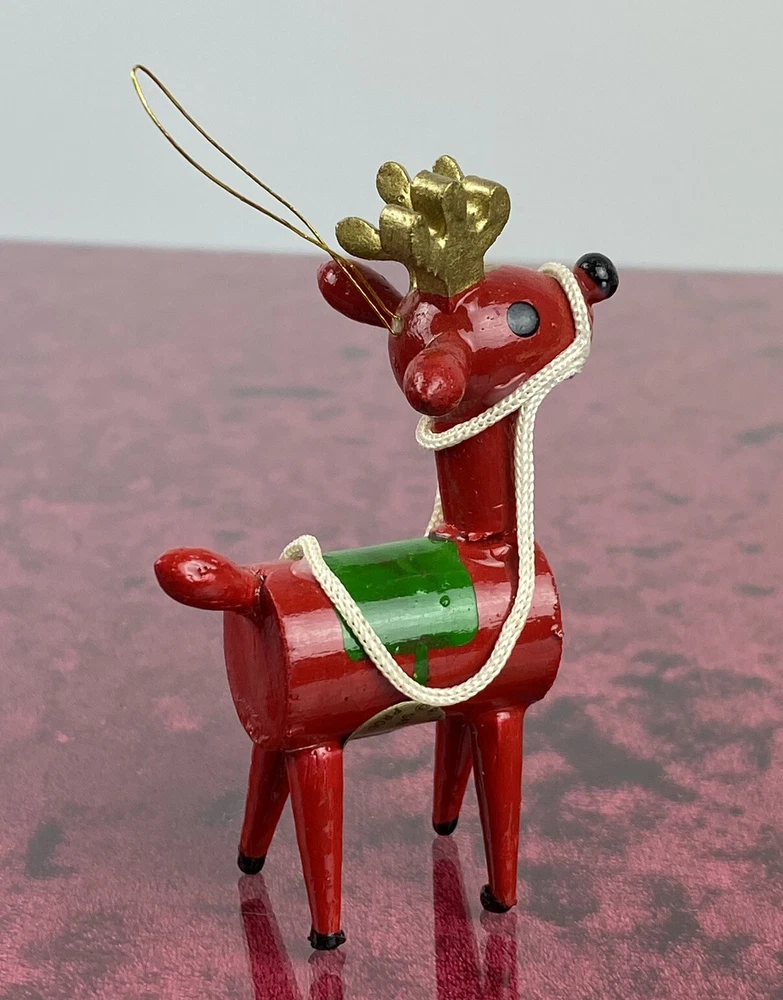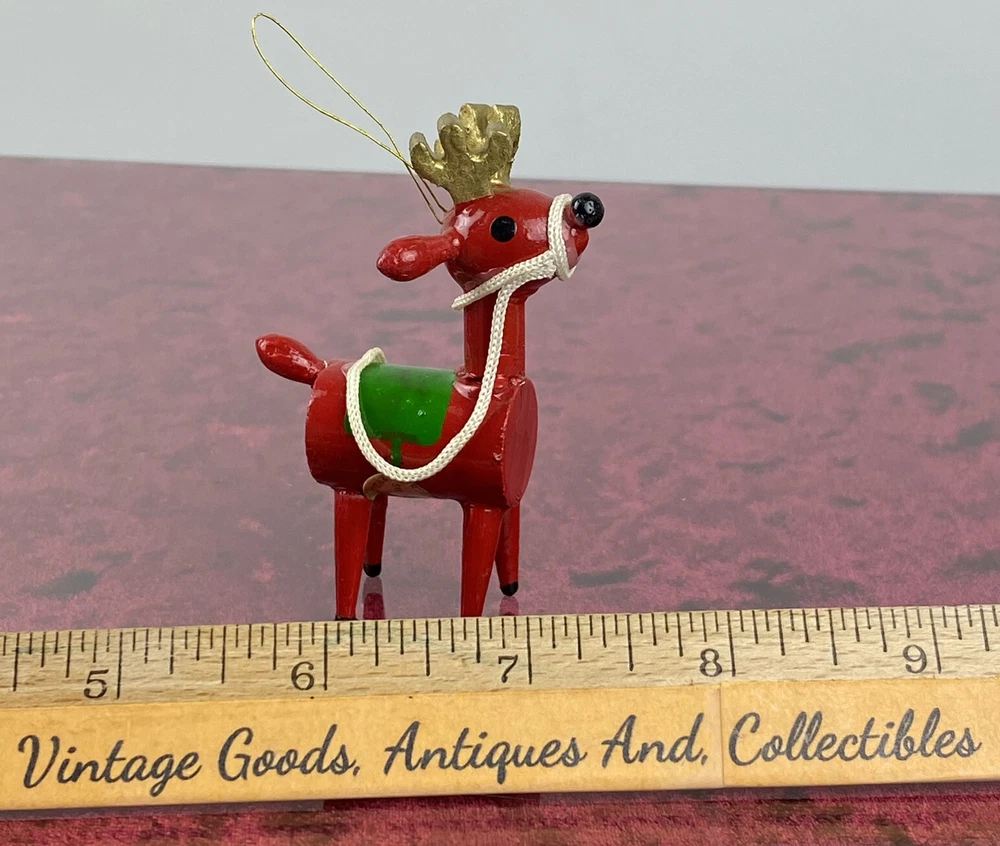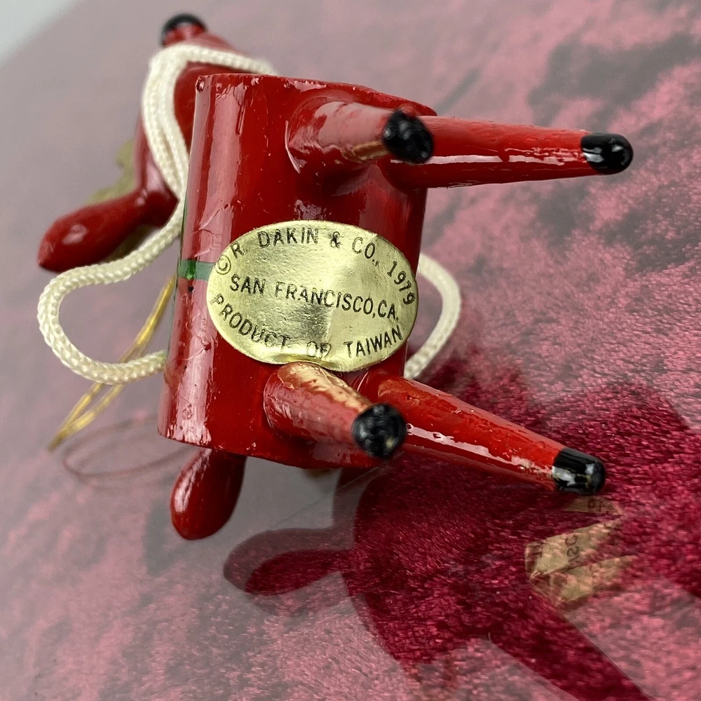 This vintage wooden ornament from 1979 features an adorable Christmas Reindeer. The item is hand painted and handmade, adding to its unique charm. It's perfect for collectors or anyone who wants to add a touch of nostalgia to their holiday décor. The ornament measures 3 inches in height and is part of the Dakin Ornaments collection. The adorable ornament is made of wood and was manufactured in Taiwan. It's a great addition to any collection of holiday ornaments, and its small size makes it ideal for those with limited space. The item is being sold as used, but its excellent condition is evident in the quality of its craftsmanship. Add this charming and timeless piece to your collection today! Most of our items are second hand and have some shelf wear on them. We do not guarantee mint condition unless otherwise noted. Please take time to look closely at all photos of items and specifics, as they are all part of the complete description. Most noticeable flaws we see will be pointed out with a pen. All items in the photos are of the actual product being shipped directly to you (minus display props and measuring devices) If an item is not in the photos, please do not expect it. If you have any questions or concerns, please reach out to us. Our feedback speaks for itself. We do all we can to keep you satisfied with your buying experience from Streamline717 If you enjoyed this item, please check out our ever growing inventory for more of “The Good Stuff”