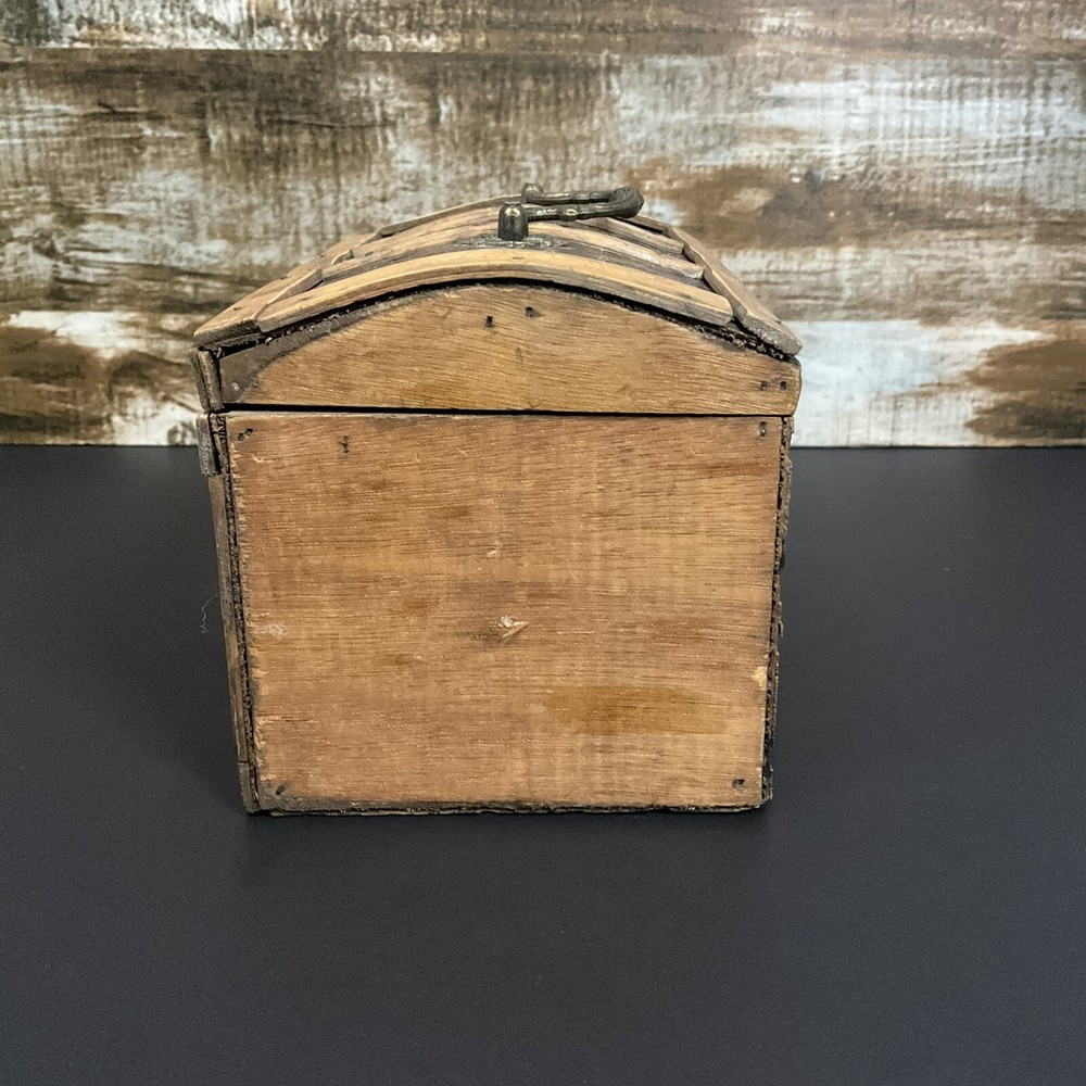 Welcome to Phantom Fables Vintage wood and metal (brass?j storage box Wood box with metal panels. Metal handle and latch. Interior is all wood. Small spot with tape residue on the bottom inside. Natural wear and patina. Otherwise in very good condition. Measurements take at widest point: Height-5 inches Width-4.5 inches Length-7 inches