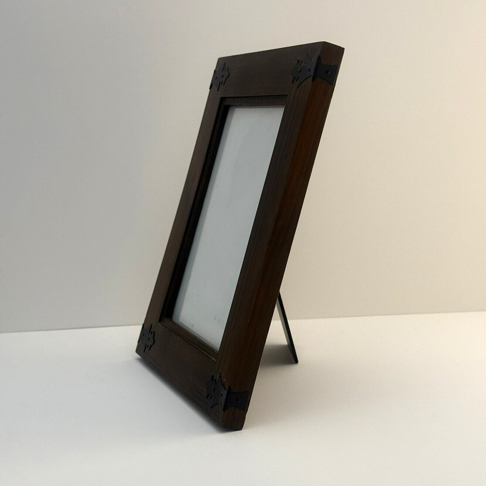 Vintage Wooden Photo Frame with Black Steel Corner fit 5" x 7" Tabletop Display. In good condition with minor signs of wear. Glass is included and clear. Features a vintage wooden frame with black steel corner accents. Perfect for displaying 5x7 inch photos on a tabletop. Adds a rustic touch to any space. See photos for more details. The pictures are of the exact item you will receive. Please check the photos for more details. Please note that this item might have a slight smell of smoke due to storage and the cardboard box used for shipping. We take great care in cleaning and carefully packing the item to minimize any potential odors. Additionally, we prioritize fast shipping to ensure the item arrives quickly and in excellent condition. If you have any concerns, feel free to contact us before purchasing. Thank you for your understanding!