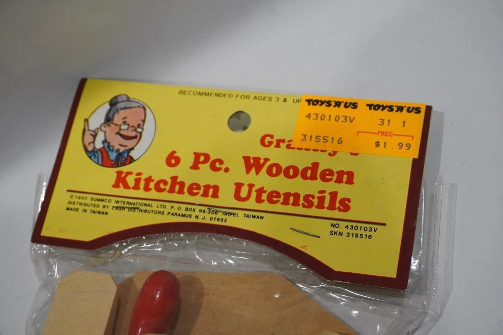 This listing is for a BRAND NEW, FACTORY SEALED Vintage 1993 Summco Granny's 6-Piece Wooden Kitchen Utensils toy set. This item is completely brand new and has never been removed from its original packaging. Don't pass up the opportunity to purchase this item for a great price. The item will be packaged securely to prevent damage. Shipping is free to anywhere in the United States. International buyers, please contact me regarding shipping, as prices vary by country. I accept payment by Paypal only. I only accept Paypal from users with CONFIRMED ADDRESSES. The item will be shipped on the same or following day that the payment is received, depending on the time that it is received. Winning bidder must send payment within 5 days. Please feel free to message me if you have any questions.