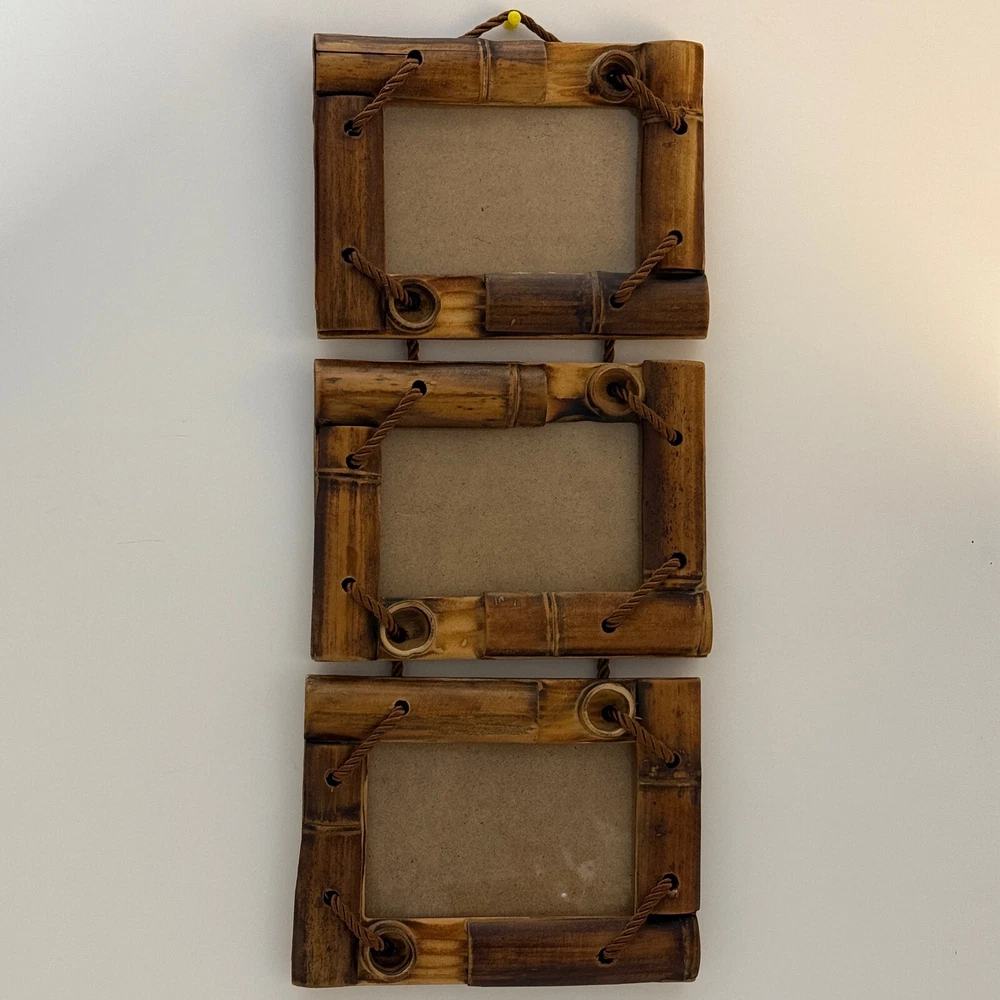 Vintage Wooden Bamboo Triple Photo Frame Fits 4x6 Inch, Rustic Hanging Design. Preowned in good condition with signs of age and wear. This rustic frame, made of wood and bamboo, holds 3 pictures, each 4x6 inches. The frame includes clear glass for each picture and ropes for hanging, offering a unique and natural design. See photos for more details. The pictures are of the exact item you will receive. Please check the photos for more details. Please note that this item might have a slight smell of smoke due to storage and the cardboard box used for shipping. We take great care in cleaning and carefully packing the item to minimize any potential odors. Additionally, we prioritize fast shipping to ensure the item arrives quickly and in excellent condition. If you have any concerns, feel free to contact us before purchasing. Thank you for your understanding!