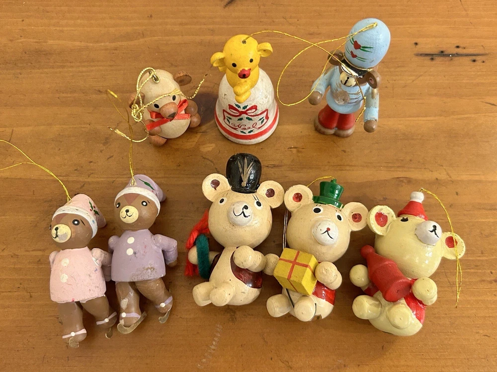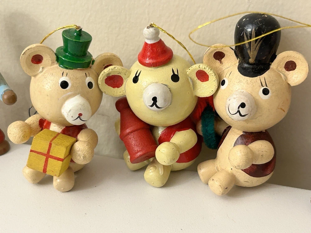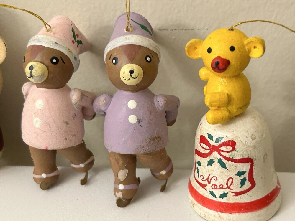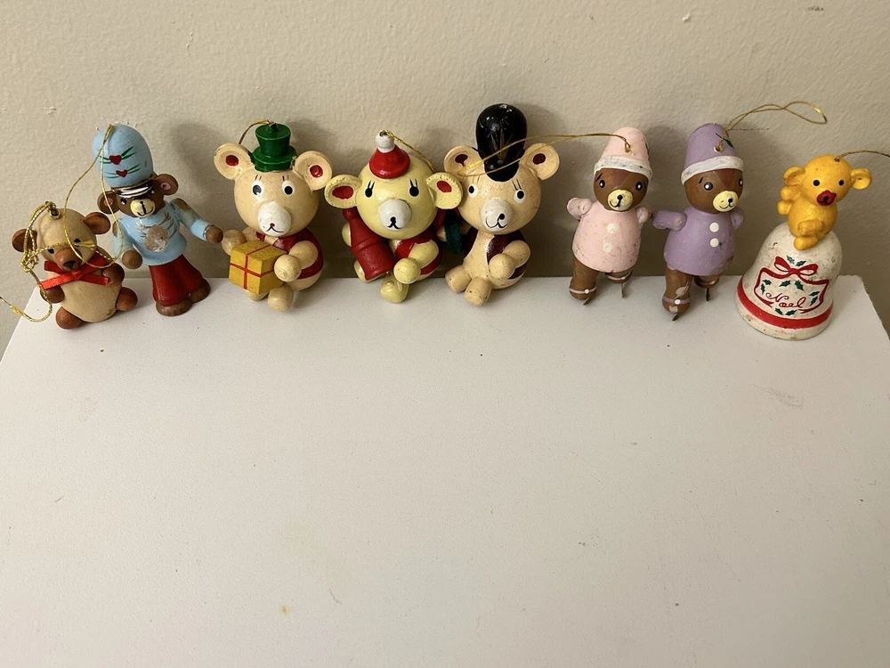 Vintage Wooden Christmas Tree Ornaments Lot Of 8 Painted Bears Vintage condition- visible signs of paint wear- refer to pics