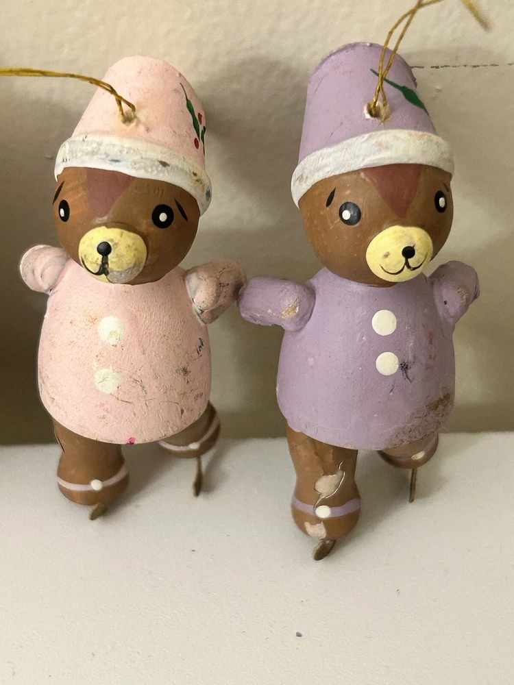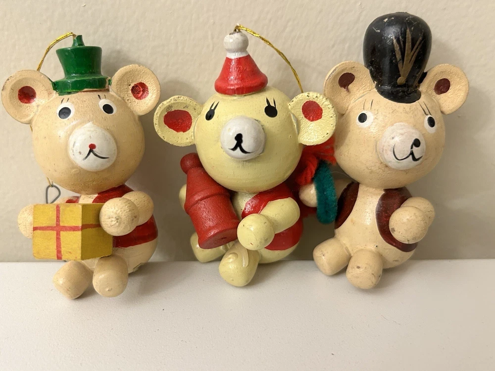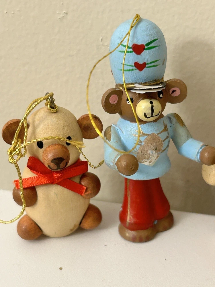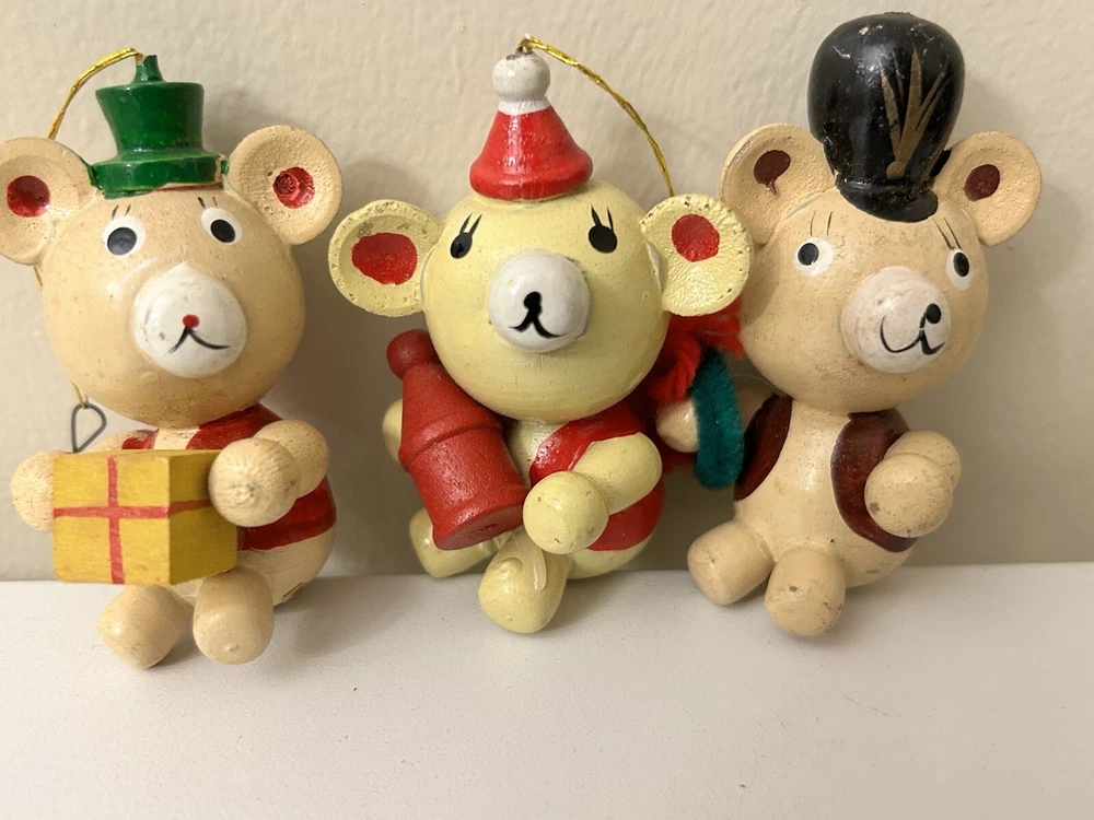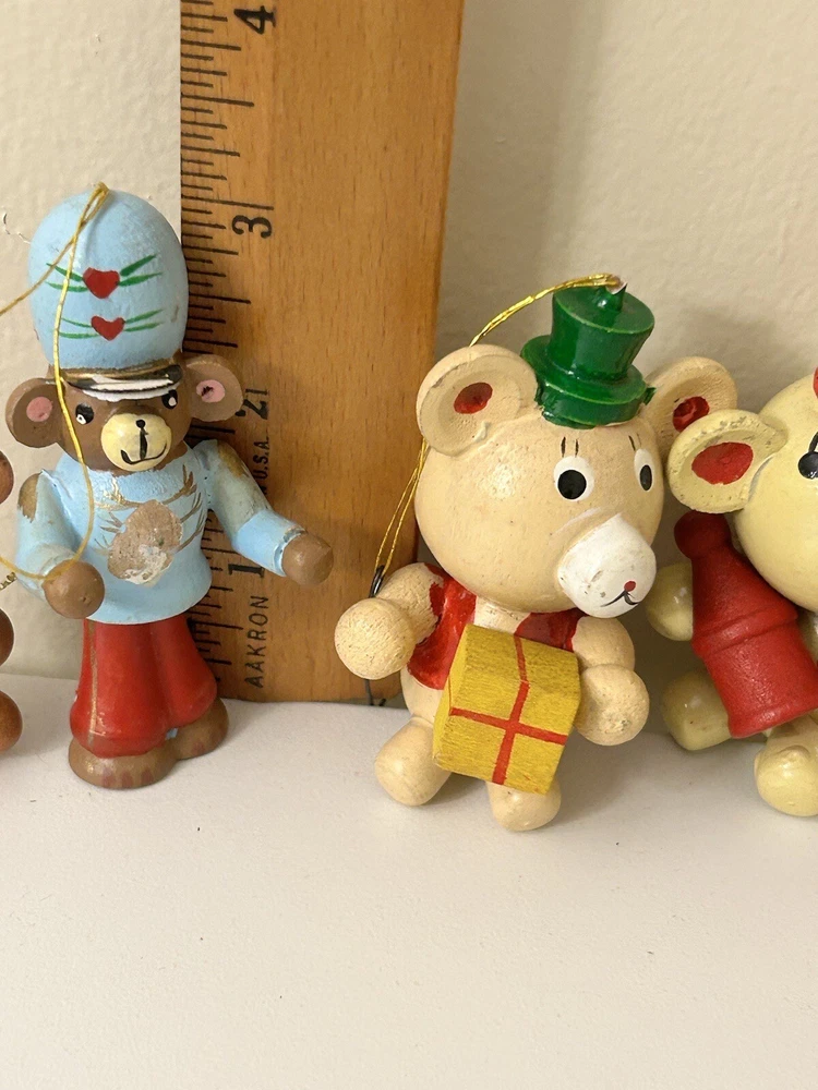 Vintage Wooden Christmas Tree Ornaments Lot Of 8 Painted Bears Vintage condition- visible signs of paint wear- refer to pics