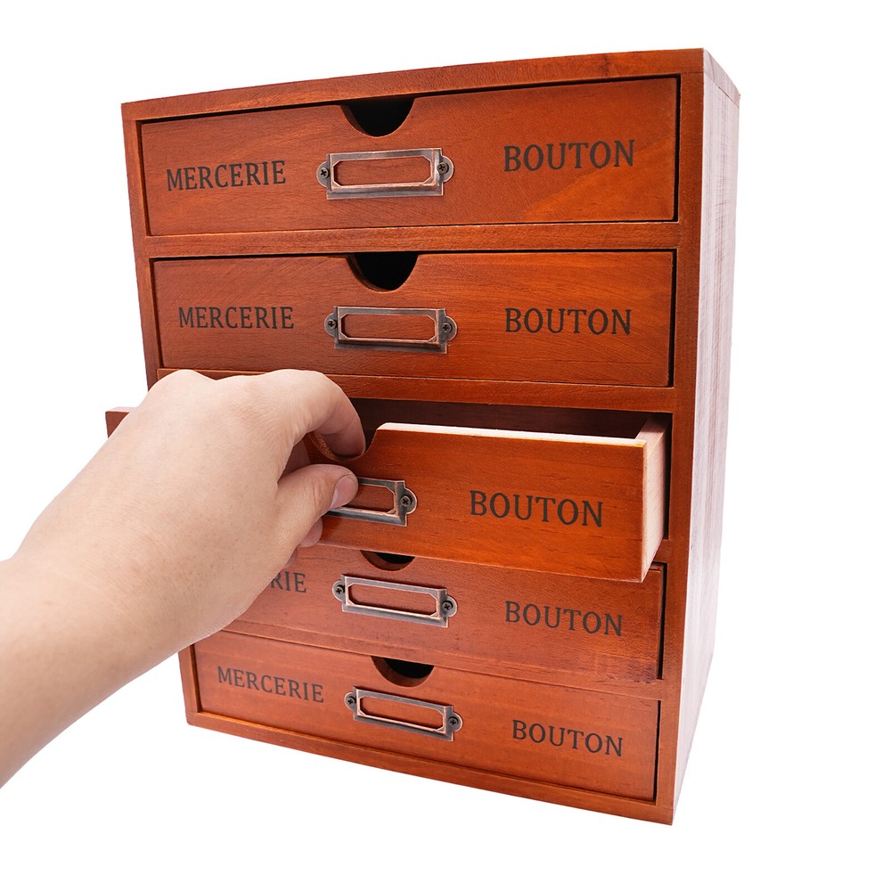Wooden Desktop Organizer Vintage Style File Storage Box Desk Drawer For Office Description Crafted from high-quality wood, this desk organizer brings order to your workspace while infusing it with a touch of classic elegance. Each drawer is meticulously constructed to ensure smooth operation and durability, making it ideal for organizing stationery, documents, or small accessories in both home and office environments. Specification Color: Brown Style: Retro Material: Pine Wood Process: Cutting, Sanding, Painting Mount Type: Freestanding Number of Drawers: 5 Assembly Required: No Total Load Capacity: 5kg/11.02lbs Gross Weight: 2.1kg/4.62lbs Net Weight: 1.9kg/4.18lbs Each Drawer Size: 23*17.5*5cm/9.05*6.88*1.96inch Product Size: 25*17.5*31cm/9.84*6.88*12.2inch Package Size: 25.7*18.8*32.4cm/10.11*7.4*12.75inch Package Included 1* Desk Organizer Key Features Build to Last: The product is mainly made of pine wood with cutting, sanding, and painting processes, odorless, non-toxic, ensuring long-lasting use and stability, and capable of withstanding daily wear and tear. Strong Load-bearing Capacity: High-quality material and stable construction give the product a weight capacity of about 11.02lbs, so you can store items on the top with confidence. Excellent Organizer : Offering ample storage space through five generously sized drawers, it efficiently houses all your essential items, keeping them within easy reach yet neatly tucked away. The top space can also hold your favorite potted plants and aromatherapy(not included), etc. Ready to Use: It does not require assembly, and you can start using it once you receive it, saving the tedious installation process. Minimalist Style: The brown color scheme combines a rectangular shape and simple lines to create a minimalist aesthetic and reveal a strong modern charm, adding a touch of refinement to your office. Enhanced Workspace Efficiency: Streamline your daily routine by having all necessities organized and easily accessible, it can boostproductivity and reduce clutter. Space-saving: The vertical stacking of drawers maximizes vertical space, making it an ideal choice for compact workstations or limited countertop areas where every inch counts. Cleaning in a Breeze: Thanks to its smooth surface and simple construction, you can wipe it clean with a damp rag. Wonderful Gift: Thanks to its practicality, it will make a fine gift for family, friends, and loved ones on Christmas, Father's Day, Mother's Day, birthdays, anniversaries, and holidays. Details Label Slots: Each drawer has label slots for easy categorization and quick access. Drawer Snap: The drawer's built-in snap prevents the drawer from falling out and keeps it safe for you to use. Comfortable Handles: Each drawer has an ergonomic handle that is not only comfortable but also easy for you to pull the drawer. Smooth Edge: The rounded and smooth edges not only add to the aesthetics of the product but also improve the safety of use. Application It can be used in an office, study, bedroom, dresser, kitchen, etc. It is suitable for organizing documents, files, pens, notebooks, handy stickers, remote controls, staplers, cosmetics, greeting cards, tickets, business cards, stationery, jewelry, hair accessories, tea and so on. It is suitable for teacher, an office worker, a crafter, collector, or a work from home professional. Notes Please allow the slight color difference caused by the shooting light and 1-3cm error due to manual measurement, and make sure you do not mind before ordering. Payment Delivery details Terms of sales About us Contact us Payment We accept ebay payment 。 Fees such as import duties, taxes are not included in the item price or shipping costs. These charges are the buyer's responsibility. Delivery details Shipping: 2-9 working days to: USA Terms of sales We maintain high standards of excellence and strive for hundred percent customer satisfaction. Feedback is very important to us. We hope that you contact us immediately before you give neutral or negative feedback, so that we can address your concerns. It is impossible to address issues if we do not know about them! About us Your satis faction is our ultimate goal. We work hard to earn your trust and future business. Our certified technicians have tested each item before shipping. The unit comes with 1 year limited warranty on all manufacturing defects. a) If you receive a defective item, you may return it or ask for a discount. Please contact us within 14 days after you receive the package. b) What you returned must be intact and in its original packaging as re? u. Customer is responsible for shipping costs of the returned item. c) We will cover the cost of shipping back t with the shipping rate indicated in the registration page. We will send you a new unit or refund the full payment you paid. Thank you. Contact us Business Hour Business Hour: Monday To Friday: 8:30 AM to 5:00 PM (Beijing China time) Due to time zones, our reply to your questions may not be immediately. But within above working time, we will reply your email within 24 hours. If it's non-workdays, please kindly be patient and wait till Monday. Please contact us with ebay message. Please feel free to contact us if you have any questions. Monday To Friday: 8:30 AM to 5:00 PM (Beijing China time) Due to time zones, our reply to your questions may not be immediately. But within above working time, we will reply your email within 24 hours. If it's non-workdays, please kindly be patient and wait till Monday. Please contact us with ebay message. Please feel free to contact us if you have any questions. Type Jewelry Box Brand Unbranded Material Pine Wood Color Brown Item Weight 1.9kg/4.18lbs Gross Weight 3.75kg/8.24 lbs Country/Region of Manufacture China Item Height 31cm/12.2in Item Length 25cm/9.84in Item Width 17.5cm/6.88in Number of Drawers 5 Room Living Room Handle Finish N/A Style Retro Handle Material N/A Department Adult Product Line N/A Assembly Required No 