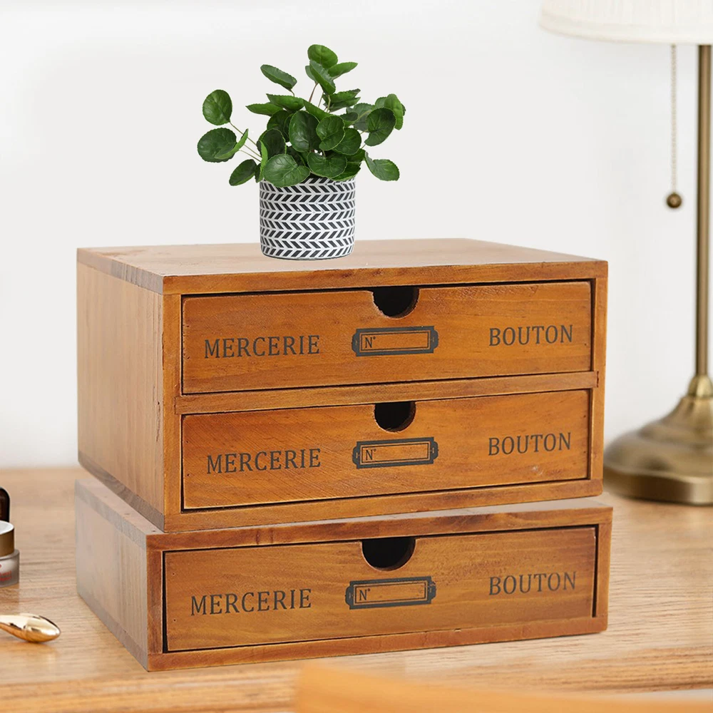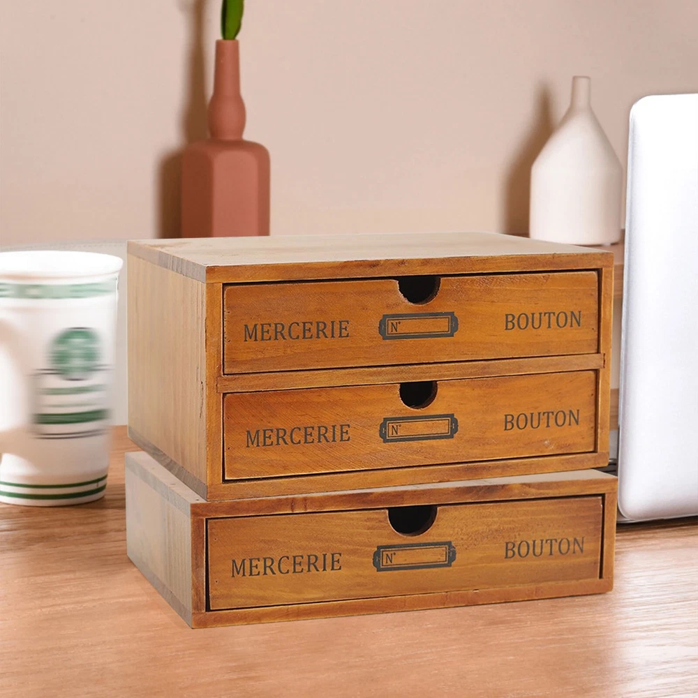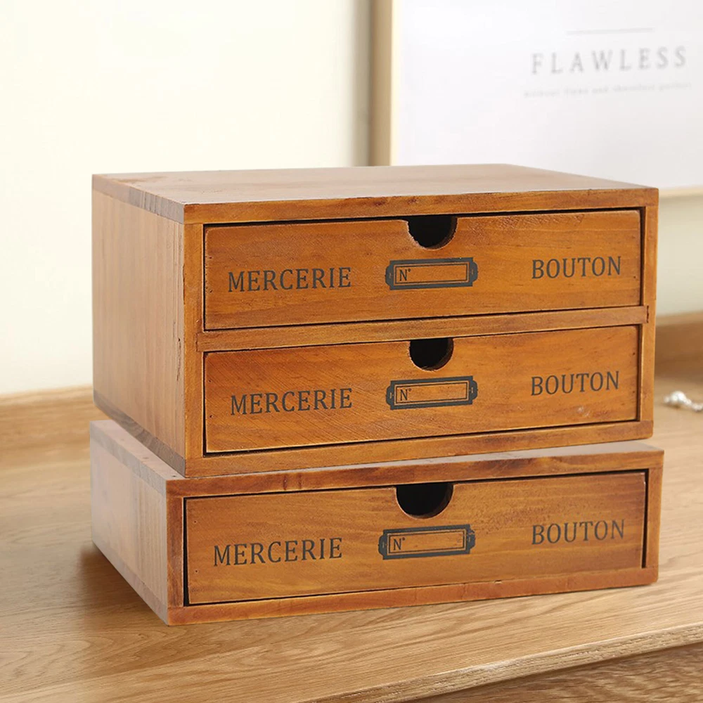 Vintage Wooden Desktop Storage Box Drawer Office Home Cosmetic Jewelry Organizer