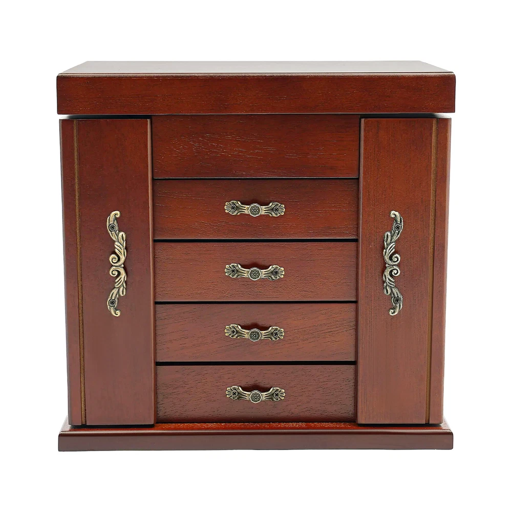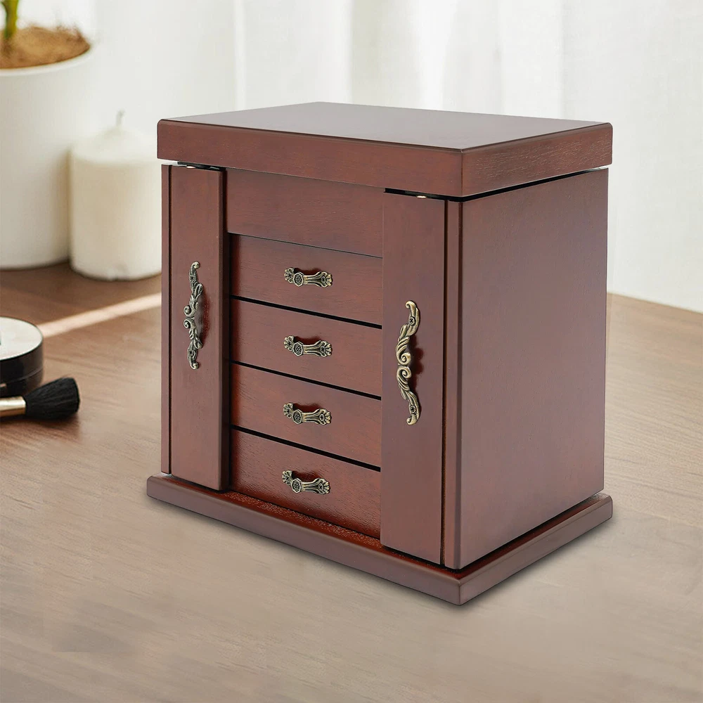 Specifications Color: Brown Style: Vintage Shape: Rectangular Material: Wood, Sponge Process: Polishing, Spray Painting Assembly Required: No Mounting Type: Tabletop Number of Drawers: 4 Number of Tiers: 5 Product Size: 25*15*24cm/9.84*5.91*9.45in Packaging Size: 31.5*23*32cm/12.4*9.06*12.6in Gross Weight: 3.15kg/6.94lbs Net Weight: 2.99kg/6.59lbs Package Included 1* Jewelry Storage Box Vintage Wooden Jewelry Cabinet Armoire Box Big Storage Box 5 Drawer W/Mirror Description Do you want to save your messy dressing table? Our jewelry storage box is the ideal choice for you to organize your jewelry. Each tier has been carefully planned to store various accessories such as rings, earrings, necklaces, etc. in an orderly manner, effectively avoiding entanglement and damage. Made of premium materials, it is not only durable but also aesthetically pleasing, making it an elegant choice for improving quality of life and personal taste. Key Features Premium Material: It is made of wood material and sponge, with a spray painting, which is scratch-resistant, impact-resistant, and not easy to deform, ensuring a long service life. Storage Master: Multiple compartments on the first tier allow you to store commonly used accessories such as bracelets, and rings. 4 drawers allow you to store watches, skin creams, facial masks, facial cleansers, etc. Multiple hooks and pin slots on both sides are designed to store hairpins, brooches, necklaces, etc., to meet your personalized storage needs. Thoughtful Design: The built-in mirror is designed to be convenient for you to put on earrings, necklaces, and daily grooming. The built-in sponge backing can protect your precious items from scratches. Exquisite Appearance: Smooth lines and retro-style design make it not only a storage box but also an exquisite decorative artwork on the top of the dressing table. Lightweight &Compact Size: The product with a lightweight(6.59lbs) and compact size(9.84*5.91*9.45in) allows you to easily move and place it without taking up much space on your dresser. Exquisite Gift: With good practicability and a retro appearance, it can be used as an ideal gift for parents, friends, and lovers so that they can also enjoy a more exquisite life. Easy Clean-up : Simple construction, smooth surfaces, and pull-out drawers make this product easy to clean, you just need a towel to remove dust easily. Buy with Confidenc e: We stand behind all our guests and look forward to assisting you with your purchase. It is our pleasure to answer your questions and concerns. The end of the story between us is not "we sell and you buy". Details Exquisite Handles: They allow for convenient and smooth opening and closing of the drawers and doors, and easy access to your items. Smooth Edges: The smooth edges enhance the beauty of the product and better care for your skin when using and cleaning it. Application The product is suitable to be placed in the living room, bedroom, dresser, vanity, and other places for organizing necklaces, bracelets, earrings, studs, hairpins, watches, rings, and other jewelry (not included). Specifications Color: Brown Style: Vintage Shape: Rectangular Material: Wood, Sponge Process: Polishing, Spray Painting Assembly Required: No Mounting Type: Tabletop Number of Drawers: 4 Number of Tiers: 5 Product Size: 25*15*24cm/9.84*5.91*9.45in Packaging Size: 31.5*23*32cm/12.4*9.06*12.6in Gross Weight: 3.15kg/6.94lbs Net Weight: 2.99kg/6.59lbs Package Included 1* Jewelry Storage Box Notes Please check the size carefully before ordering. This product only includes a jewelry storage box, other items in the picture are not included. Please do not expose the product to the sun or soak it in water for a long time. Please be informed that the drawer and doors on both sides cannot be opened when the lid on top is closed. Only after the lid is opened, can the drawers and doors be opened. Please allow the slight color difference caused by the shooting light and 1-3cm error due to manual measurement, and make sure you do not mind before you order. Payment Delivery details Terms of sales About us Contact us Payment We accept ebay payment 。 Fees such as import duties, taxes are not included in the item price or shipping costs. These charges are the buyer's responsibility. Delivery details Shipping: 2-9 working days to: USA Terms of sales We maintain high standards of excellence and strive for hundred percent customer satisfaction. Feedback is very important to us. We hope that you contact us immediately before you give neutral or negative feedback, so that we can address your concerns. It is impossible to address issues if we do not know about them! About us Your satis faction is our ultimate goal. We work hard to earn your trust and future business. Our certified technicians have tested each item before shipping. The unit comes with 1 year limited warranty on all manufacturing defects. a) If you receive a defective item, you may return it or ask for a discount. Please contact us within 14 days after you receive the package. b) What you returned must be intact and in its original packaging as re? u. Customer is responsible for shipping costs of the returned item. c) We will cover the cost of shipping back t with the shipping rate indicated in the registration page. We will send you a new unit or refund the full payment you paid. Thank you. Contact us Business Hour Business Hour: Monday To Friday: 8:30 AM to 5:00 PM (Beijing China time) Due to time zones, our reply to your questions may not be immediately. But within above working time, we will reply your email within 24 hours. If it's non-workdays, please kindly be patient and wait till Monday. Please contact us with ebay message. Please feel free to contact us if you have any questions. Monday To Friday: 8:30 AM to 5:00 PM (Beijing China time) Due to time zones, our reply to your questions may not be immediately. But within above working time, we will reply your email within 24 hours. If it's non-workd