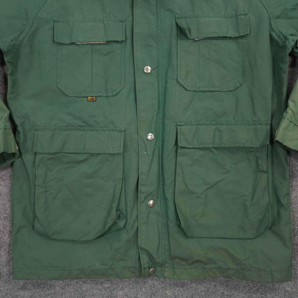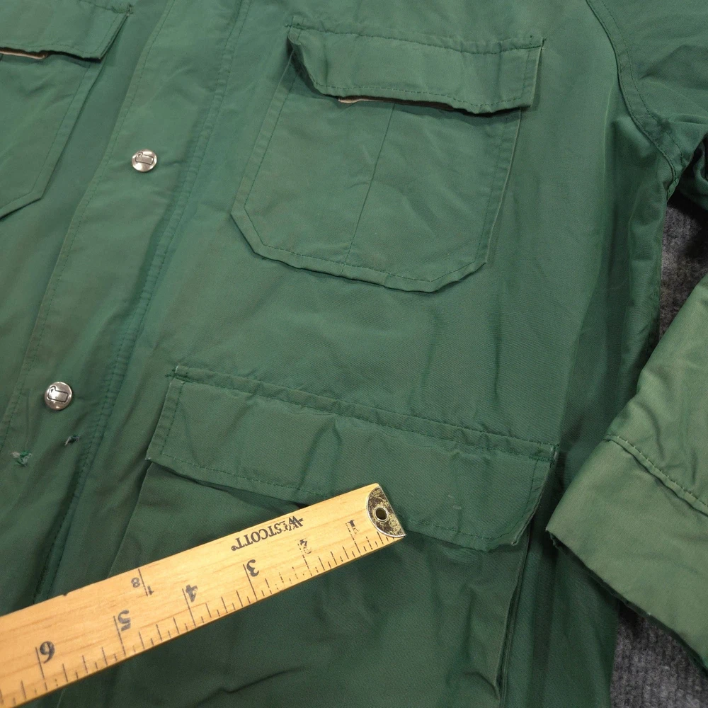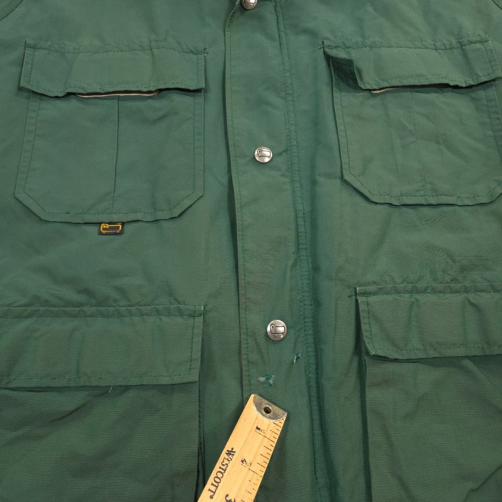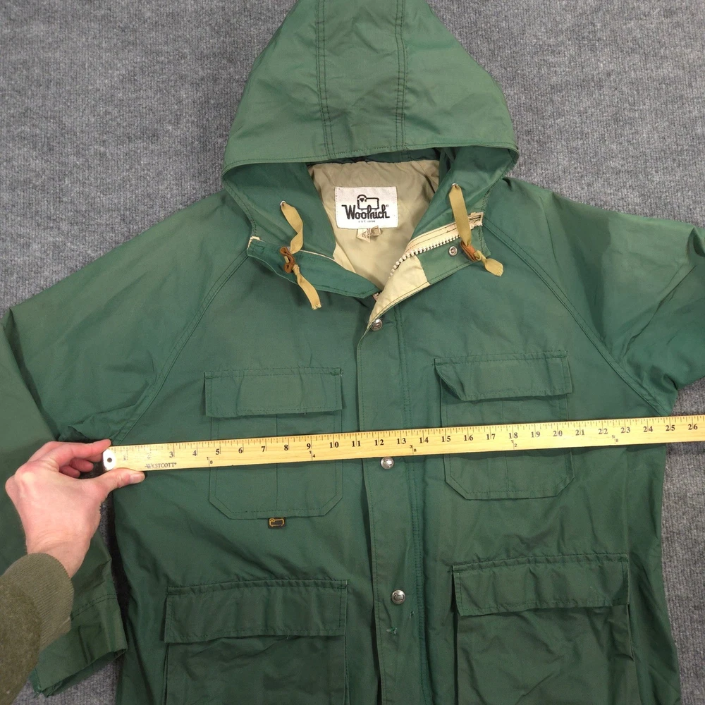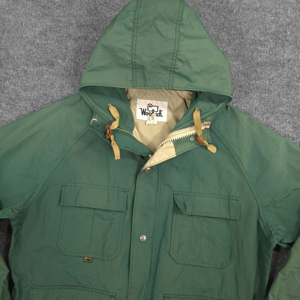 Vintage Woolrich Parka Jacket Mens M Spruce Green Hooded Lined Utility Pockets Good vintage condition. Wear and fading throughout. Marks on front pocket and on hem, some tears on zipper fly, highlighted in last 3 photos. Please see photos for measurements. Sold as pictured. Thanks for looking! -Measurements are approximate, please measure and check your favorite items at home to estimate fit -100% authenticity guaranteed -Items typically ship next business day