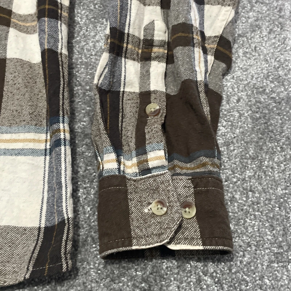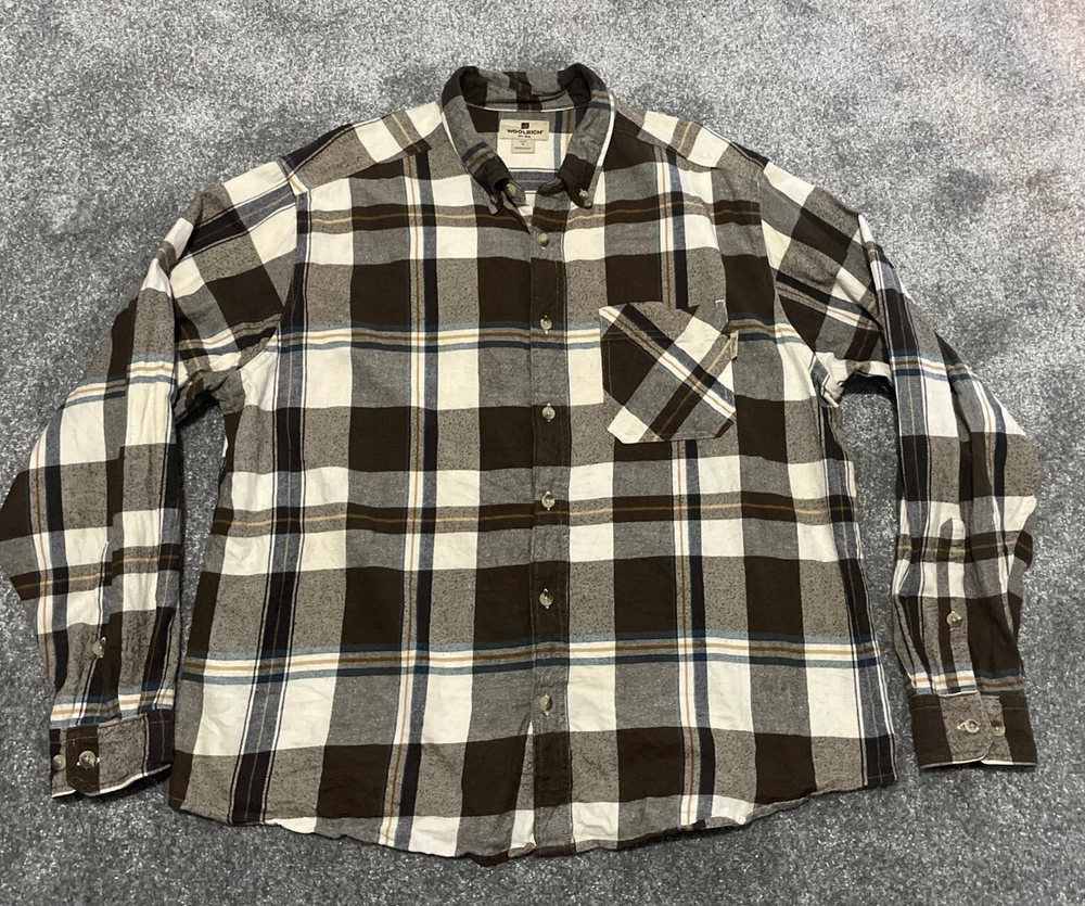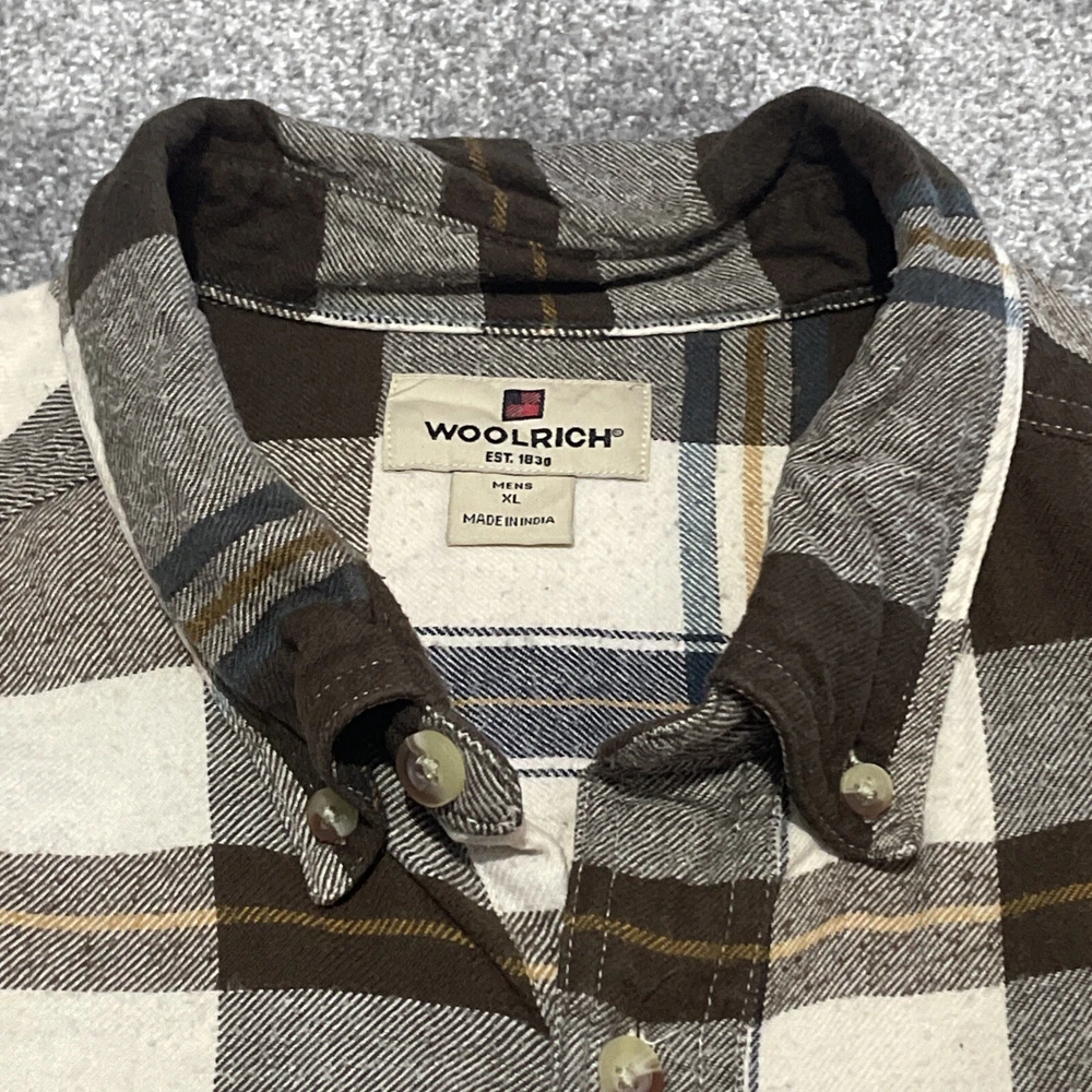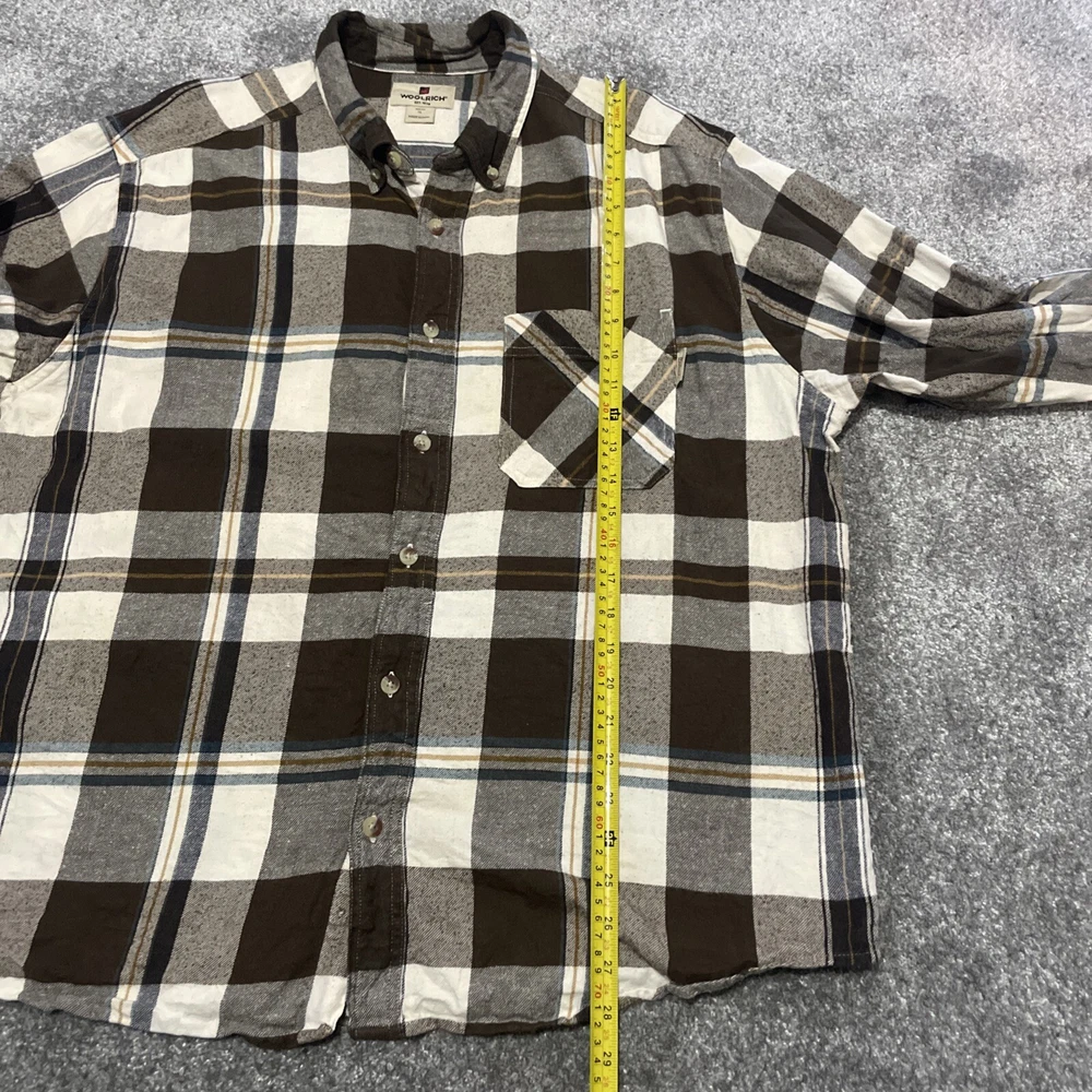 Size Type: Regular Closure: Button Accents: Button, Embroidered Theme: 50s, 60s, Classic, Retro, USA, Western Features: All Seasons Vintage: Yes Colour: Brown Type: Button-Up Season: Autumn, Spring, Winter Department: Men Fit: Classic Fabric Type: Cotton Size: 2XL Sleeve Length: Long Sleeve Material: Cotton Brand: Woolrich Pattern: Plaid Occasion: Casual, Travel, Workwear Neckline: Collared