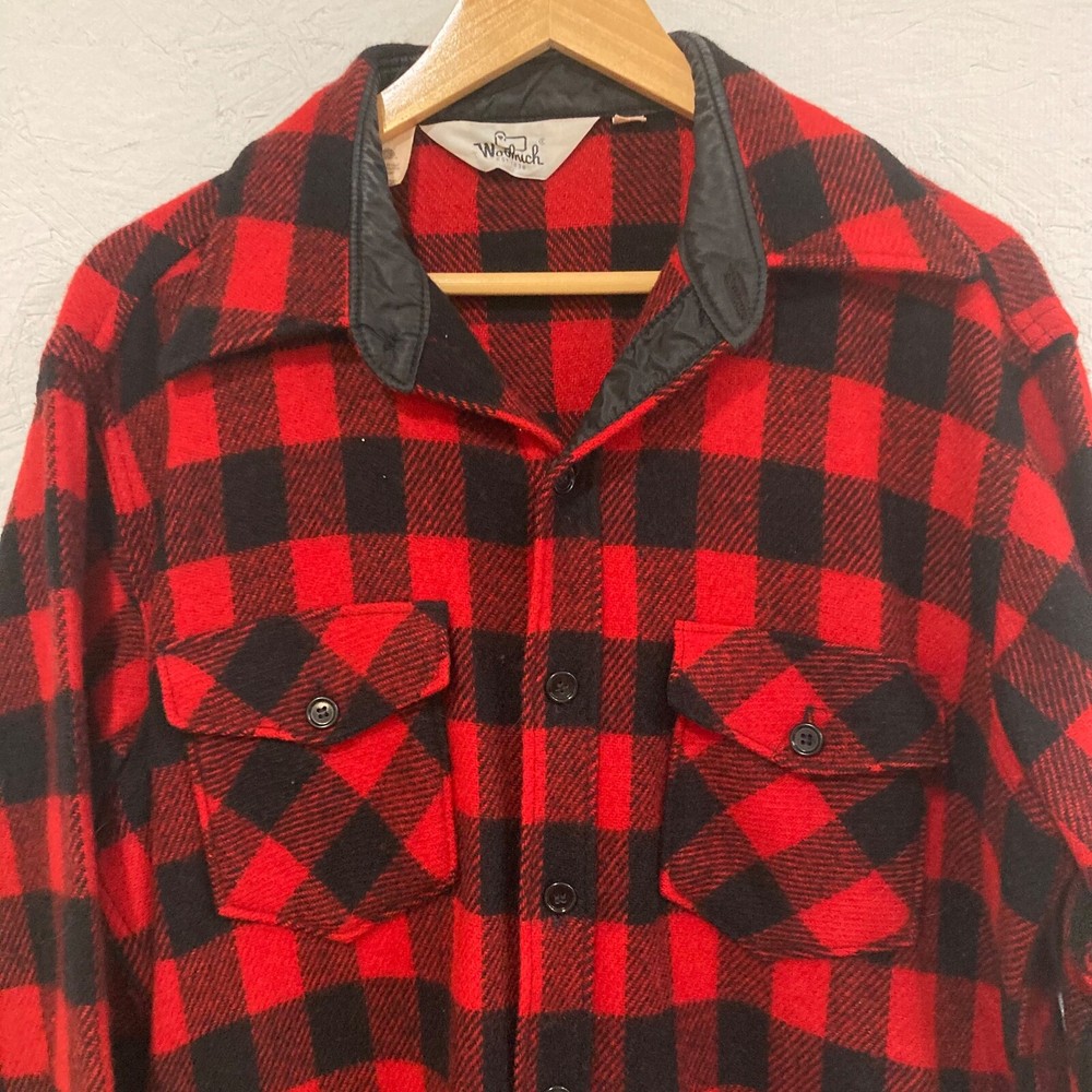 Vintage Woolrich Wool Blend Shacket Shirt Jacket Mens L Red Buffalo Plaid 93 USA outdoor hiking camping lumberjack