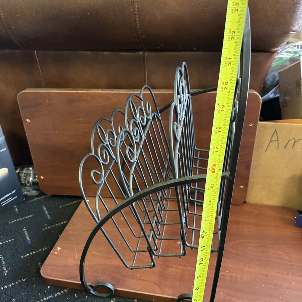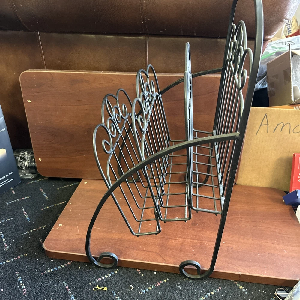 Vintage Wrought I Metal Magazine Rack Record Holder With French Scroll