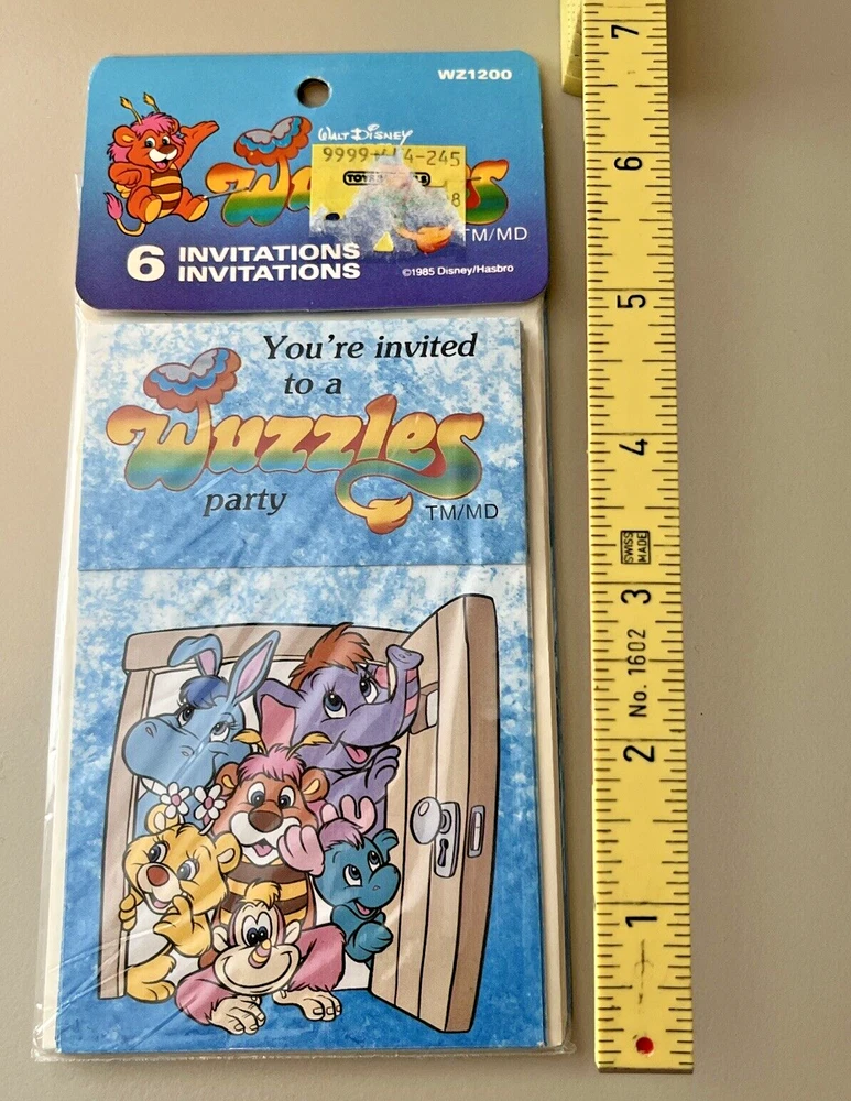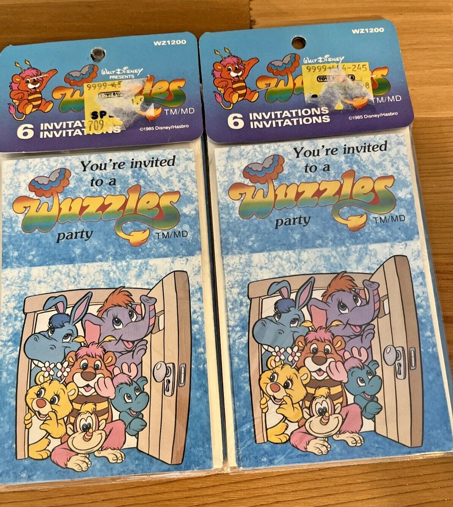 Vintage Wuzzles Party hats Birthday Invitations Walt Disney 1985 SEALED