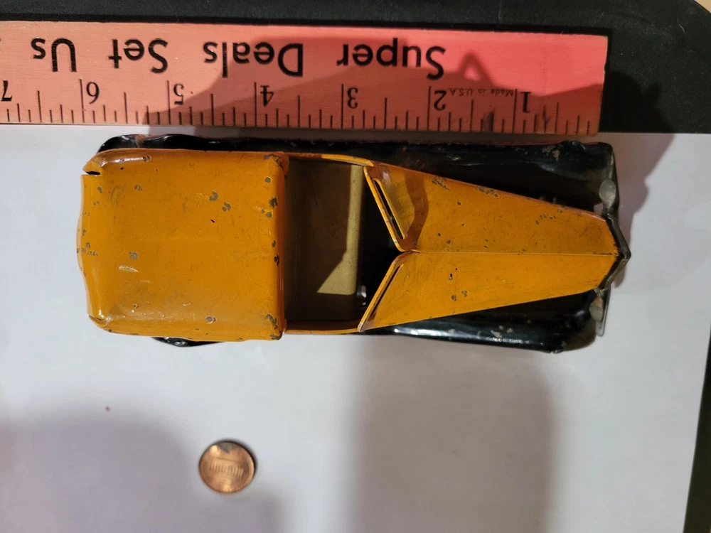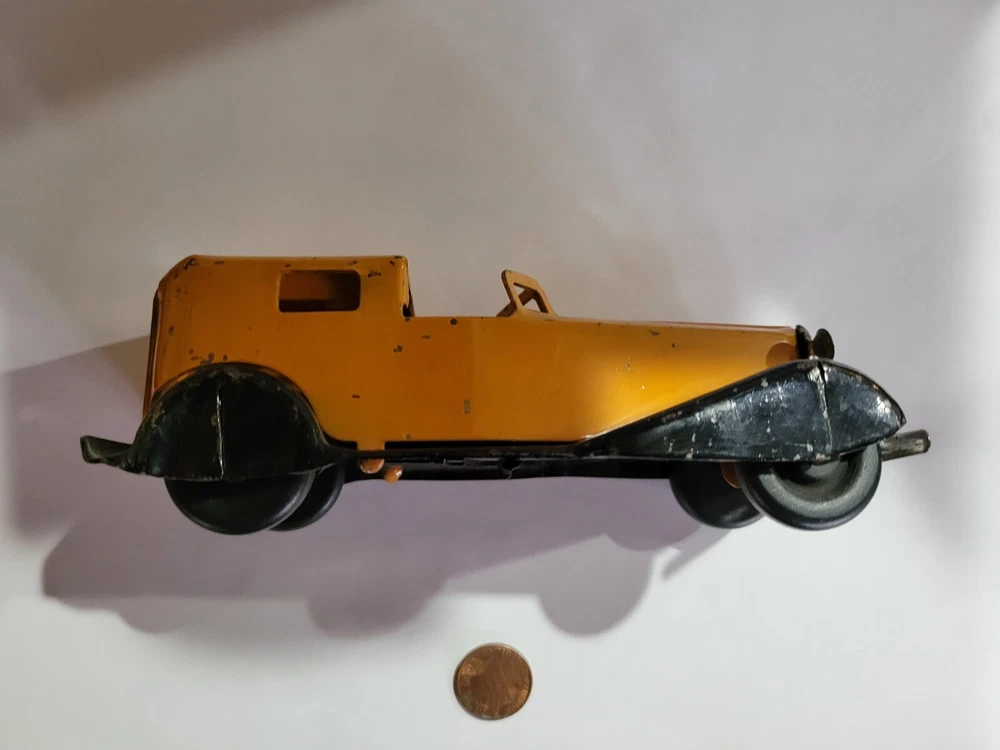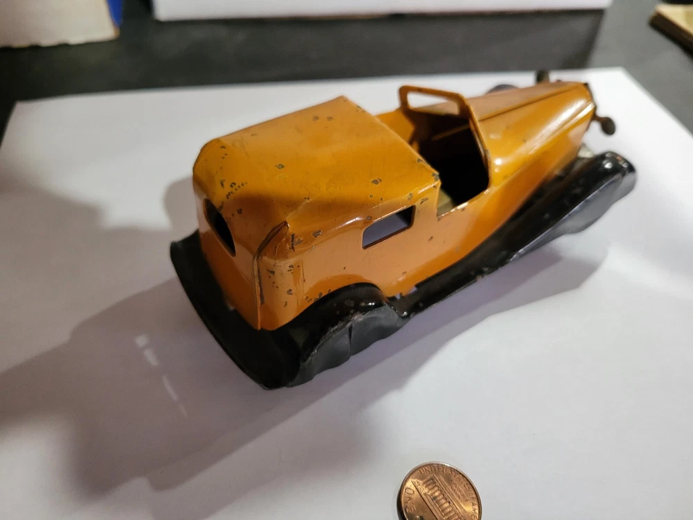 Vintage Wyandotte? Metal Toy Car. I was told this was Wyandotte, but I am not sure. It has some wear / paint loss. If there is a penny in the picture, it is to give an idea of size. Please see the picture(s). Please ask any questions you have. Payment must be made within 3 days unless other arrangements are made. Payment by Paypal or through Ebay only. PA residents must pay sales tax on taxable items