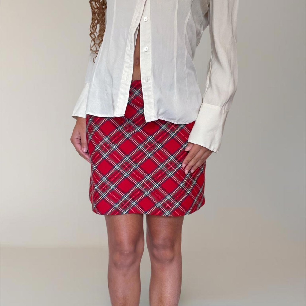 Womens Vintage Xhilaration Red Plaid Mini Skirt • size 5 • 30 waist (15” flat) • 15” length