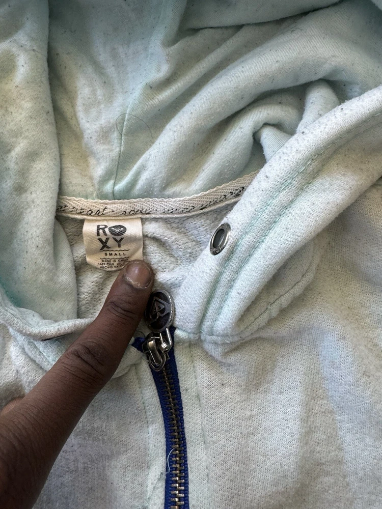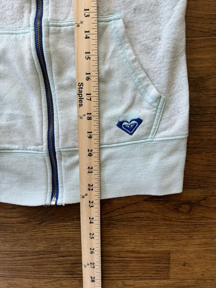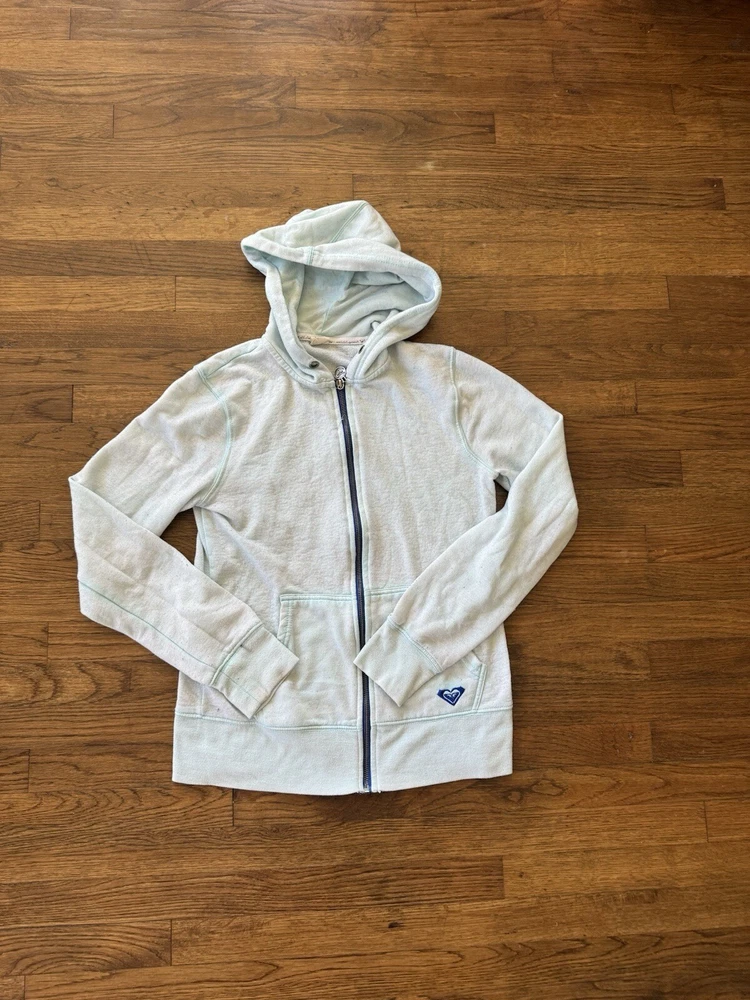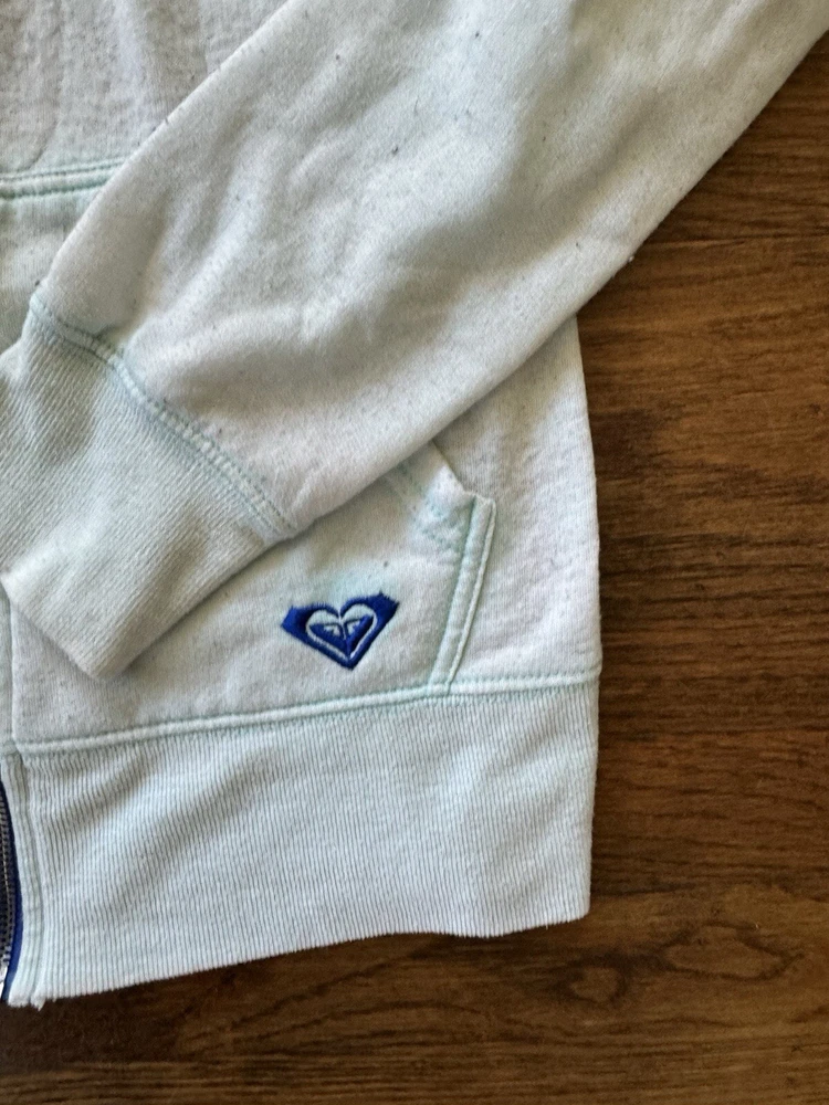 Vintage Y2K 00s Roxy Hoodie Women’s Small Baby Blue Zip Up Punk Grunge USA Rare