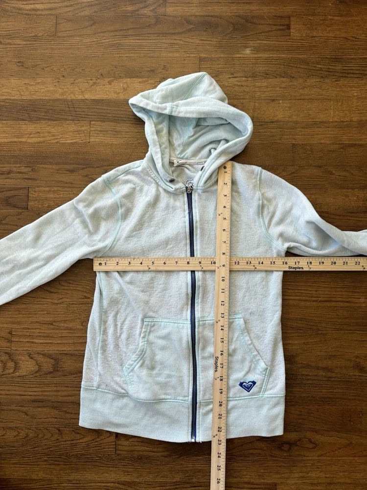 Personalize: No Occasion: Activewear Size: S Style: Full Zip Color: Blue Material: Cotton Season: Fall, Spring, Winter, Summer Closure: Zip Pattern: Solid Department: Women Brand: ROXY Size Type: Regular Vintage: Yes Sleeve Length: Long Sleeve Features: Hooded, Pockets Theme: Grunge Type: Hoodie Garment Care: Machine Washable