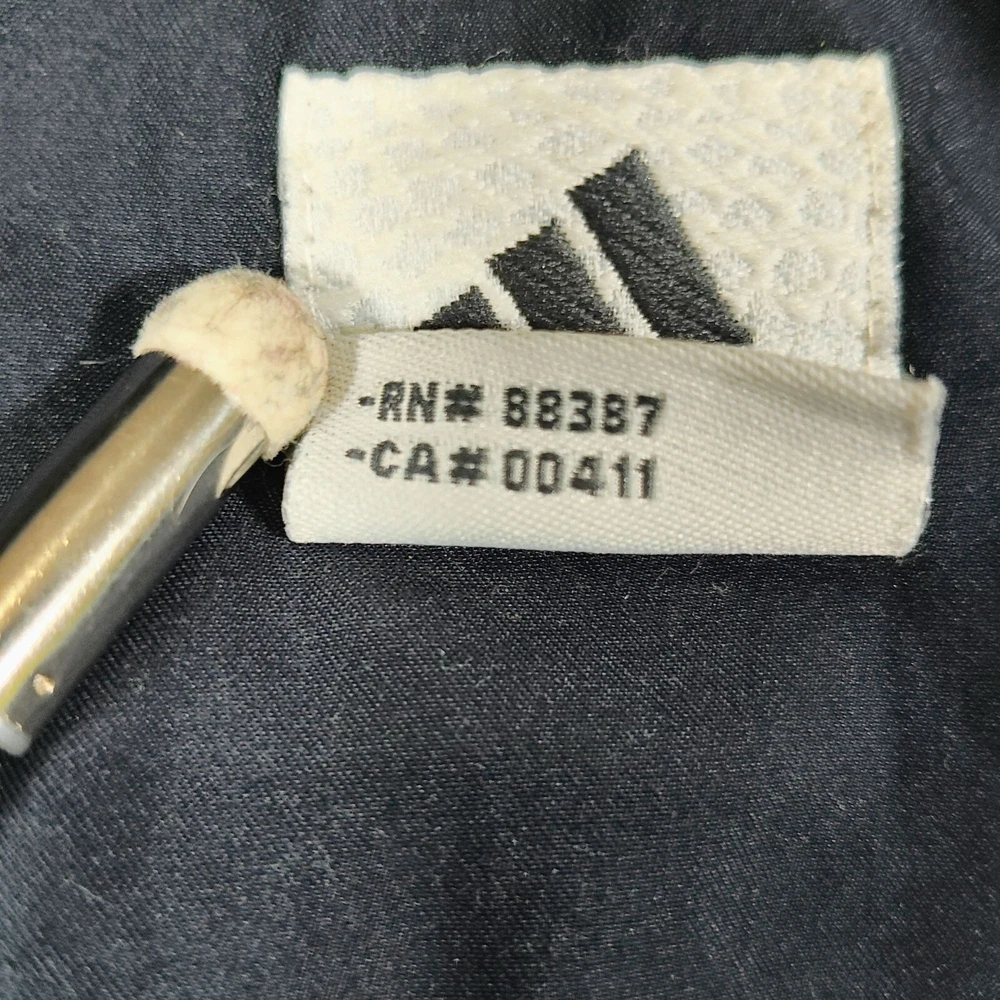 Condition Notes: Fair/good vintage condition. Multiple spots of dark discoloration spread out over front and back of jacket. Moderate wear throughout. See photos. Product Notes • Half-Zip Closure • Embroidered Adidas Logo • Elastic Hem & Cuffs • Side Pockets • Machine Washable • Mesh Lining • Vinted Back Measurements: Pit to Pit: 24 inches Chest: 48 inches Hem to Collar: 26.125 inches Please check photos and measurements carefully. Note the boxy fit and relatively short length.