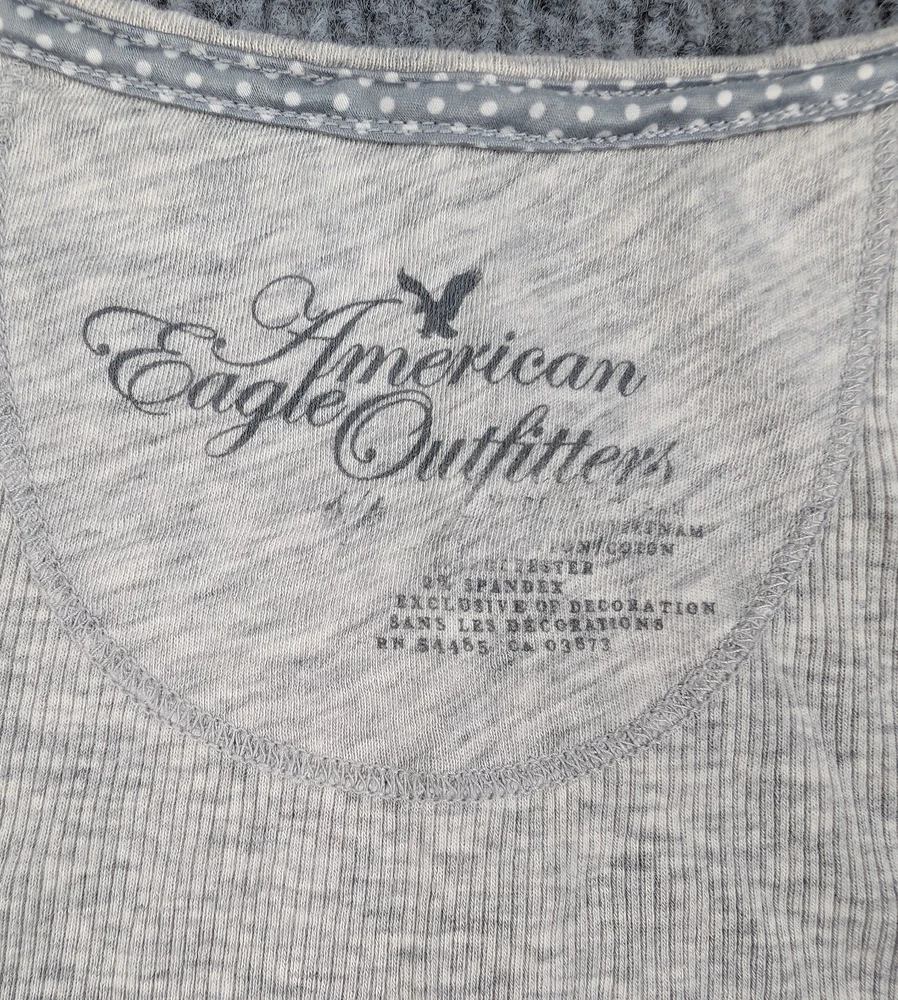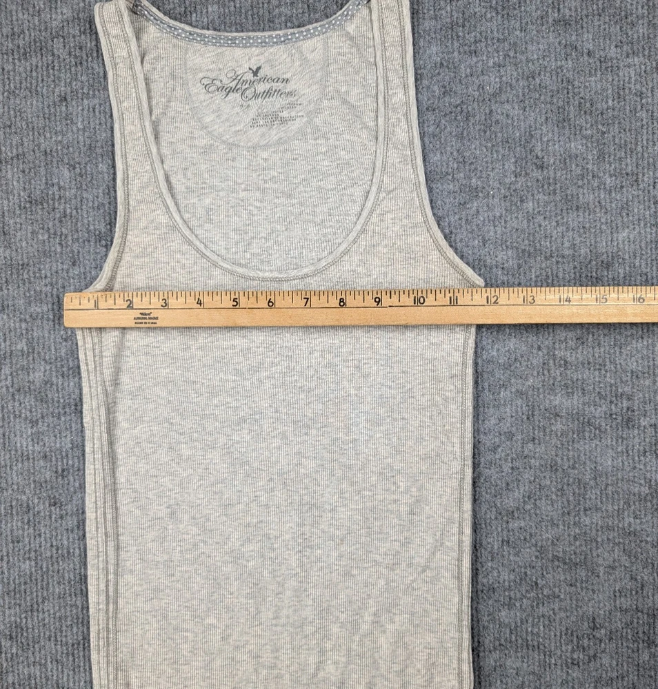 Brand: American Eagle Outfitters Size: XS Size Type: Regular Department: Womens Type: Tank Top Color: Gray Pattern: Solid Sleeve Length: Sleeveless Neckline: Scoop Neck Material: 57% Cotton, 36% Polyester, 7% Spandex Fabric Type: Knit Fit: Slim Occasion: Casual Style: Basic Season: Spring, Summer, Fall Country/Region of Manufacture: Cambodia Condition: Pre-owned