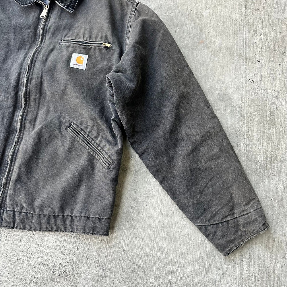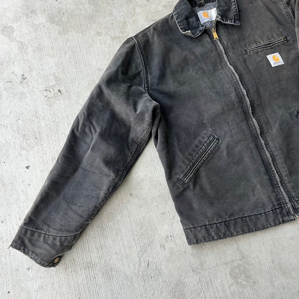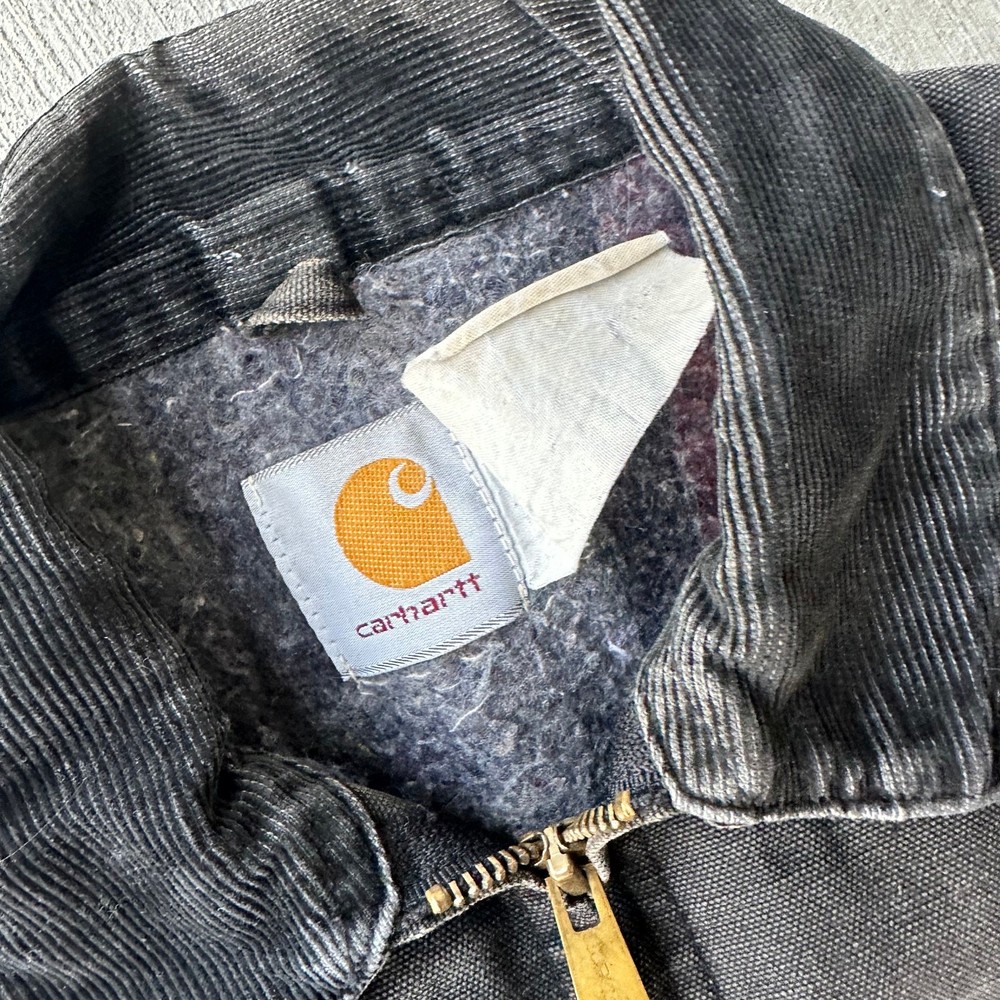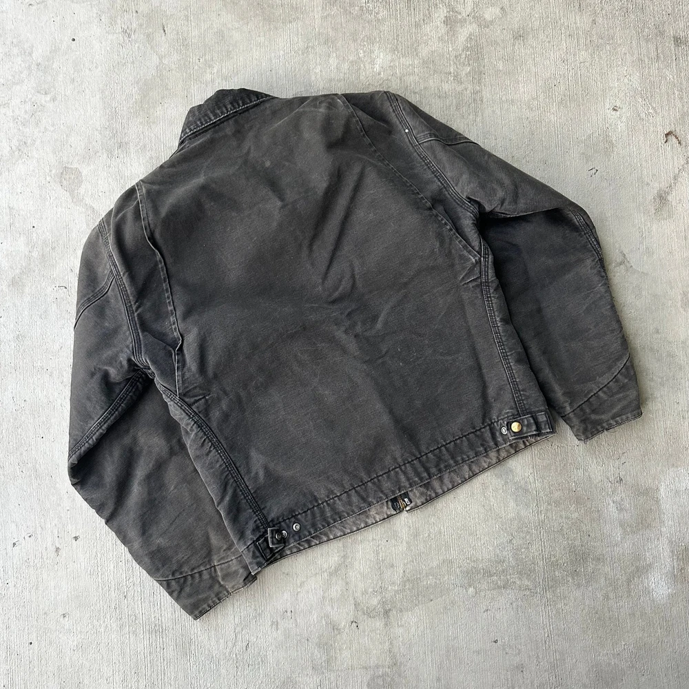 Vintage Y2K black Carhartt Detroit work wear jacket. Super sick fade on this one! Some slight discoloration throughout, see photos. Has no tag measures 24.5x27.5 so please check measurements before purchasing. I do my best to show any flaws in pictures. Quick shipping! Bundles encouraged! @ants_haul on Instagram.