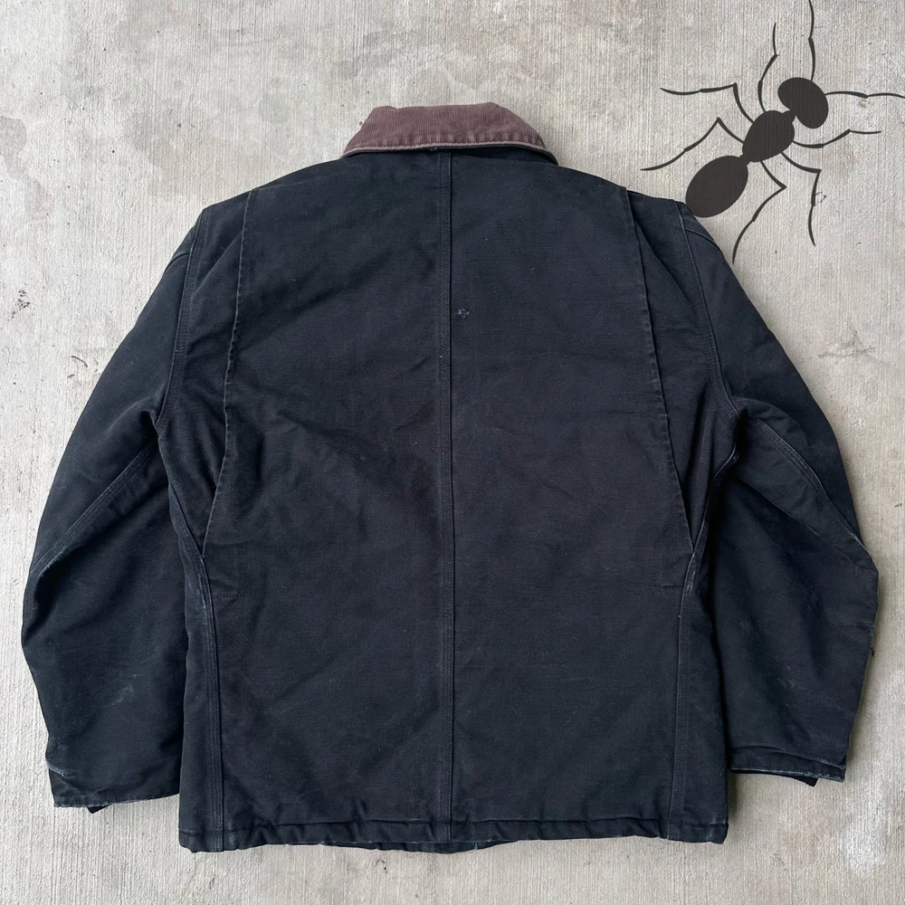 Vintage Y2K Carhartt black arctic work wear jacket. Good one. Few marks on sleeve. Some slight discoloration on front and back. Faded tag, Measures 23x27.5. Please check measurements before purchasing. I do my best to show any flaws in pictures. Quick shipping! Bundles encouraged! @ants_haul on Instagram. J0148!!!