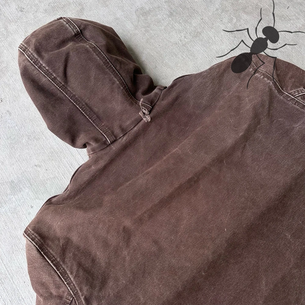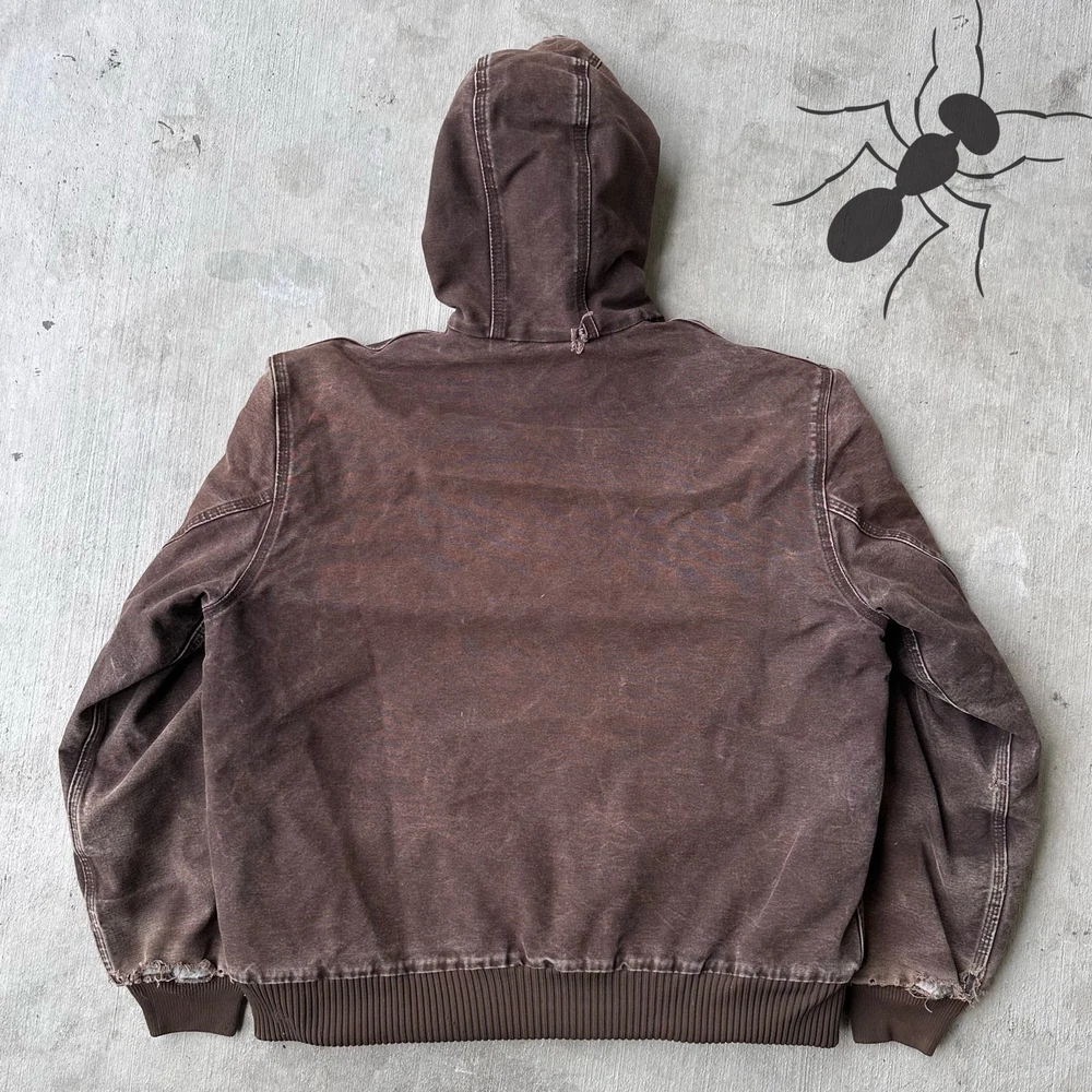 This jacket is a total gem! The vintage Y2K Carhartt style is so on-trend right now, and the dark brown quilted fabric gives it that perfect rugged yet stylish look. Love the natural fading and subtle distressing—adds so much character. Super cozy hood and great fit if you check the measurements. Shipped fast and exactly as pictured. A must-have for workwear lovers!