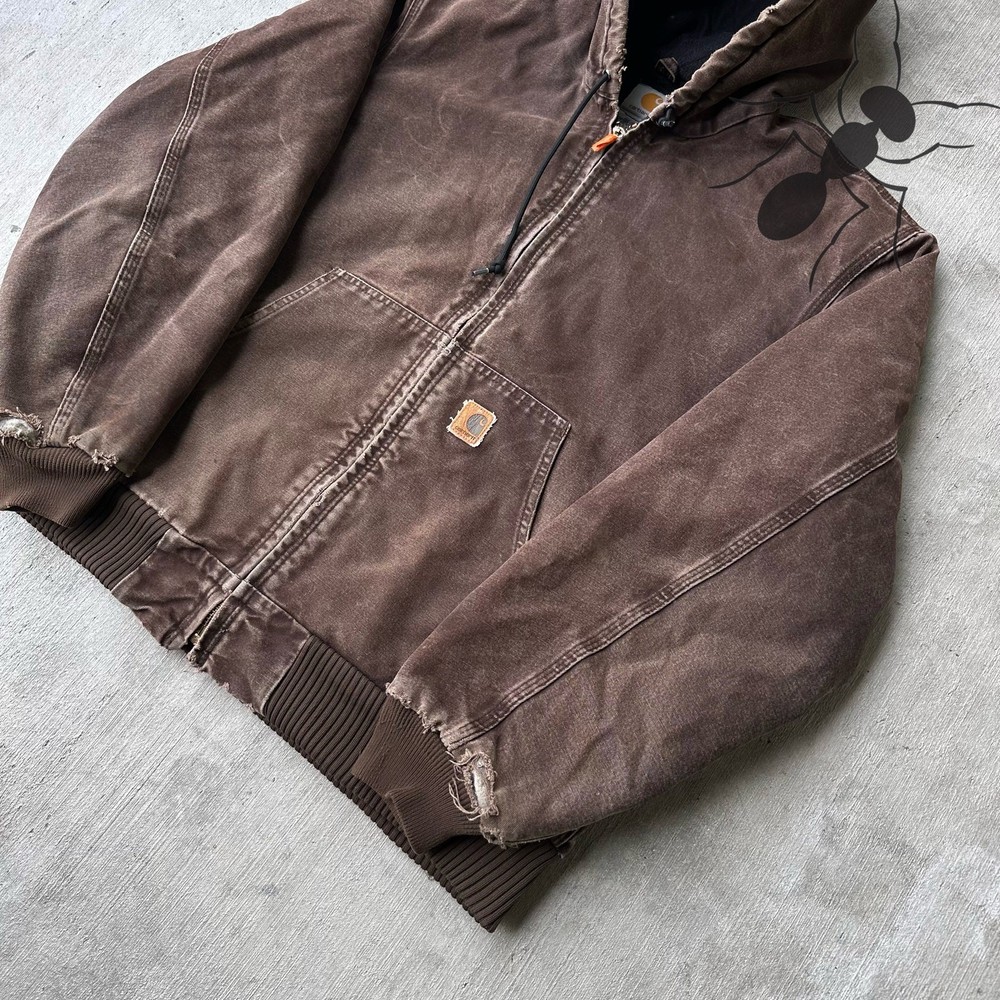 Vintage Y2K Carhartt dark brown quilted hooded work wear jacket. Nice fade on this one! Distressing on sleeve cuffs and back of hood. Measures 26.5x28. Please check measurements before purchasing. I do my best to show any flaws in pictures. Quick shipping! Bundles encouraged! @ants_haul on Instagram. J0138!!!