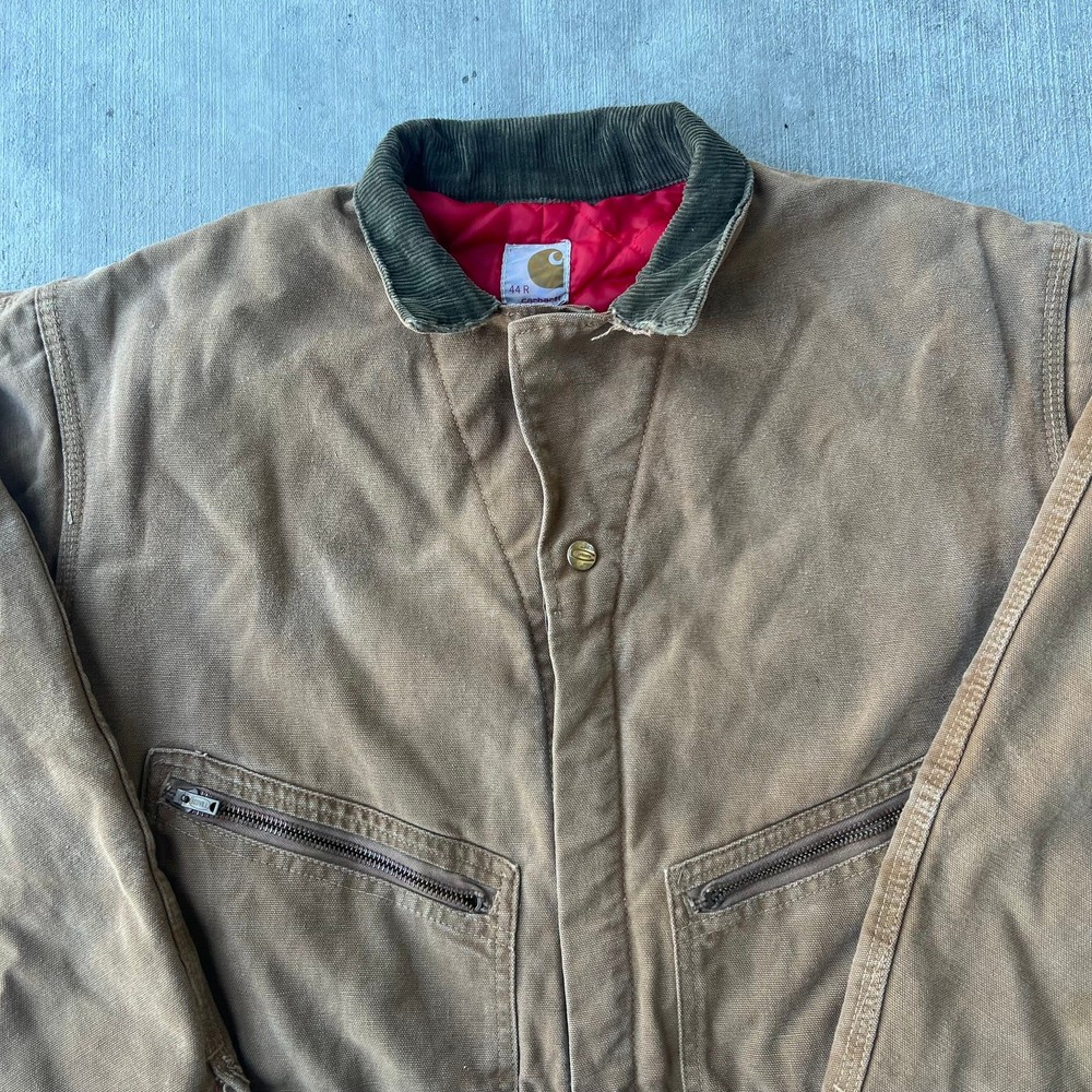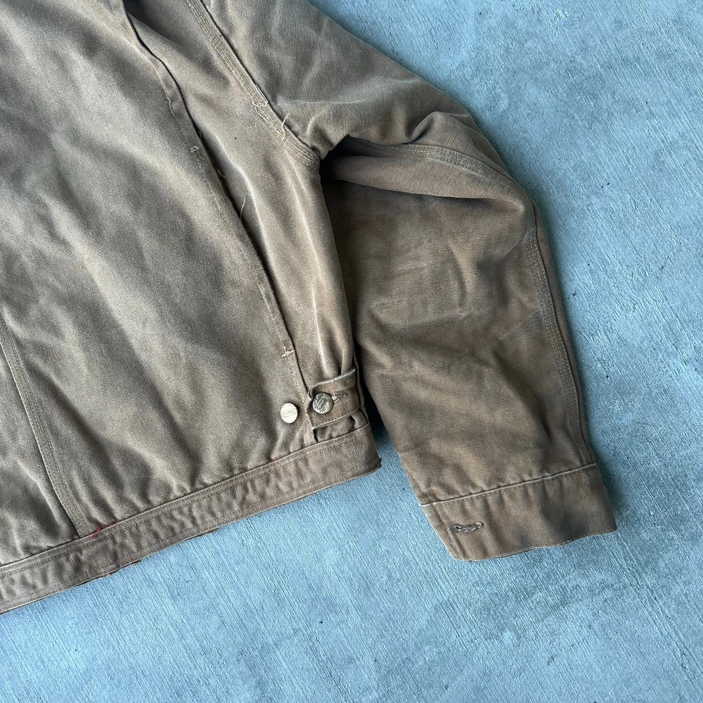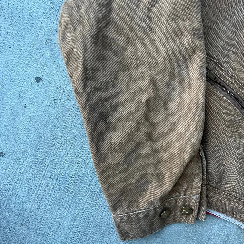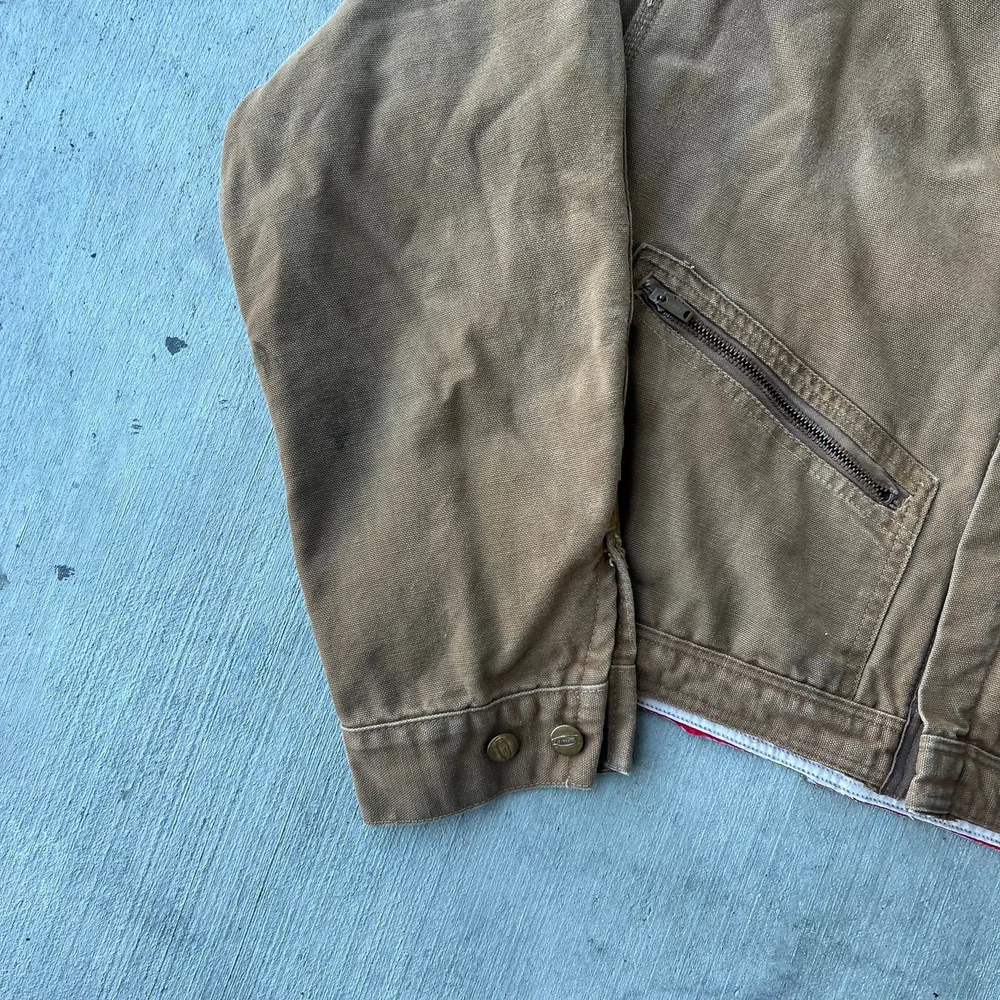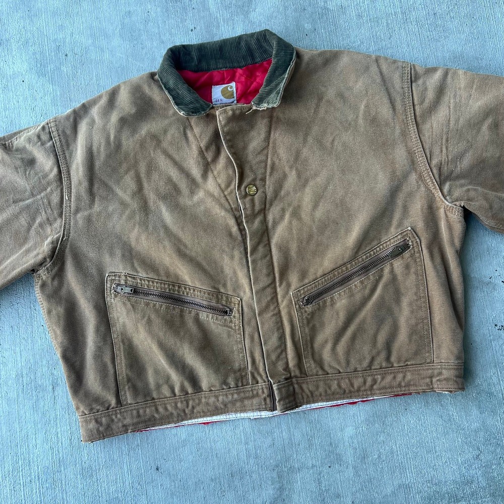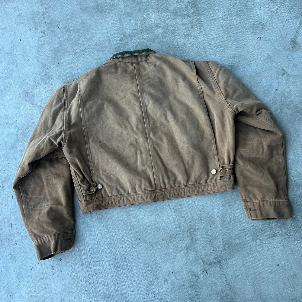Vintage y2k carhartt cropped detroit style work wear jacket. Cut from coveralls so the zipper will not work!! Older pair. Really cool. Measures 24x19. Please check measurements before purchasing. I do my best to show any flaws in pictures. Quick shipping! Bundles encouraged! @ants_haul on Instagram.
