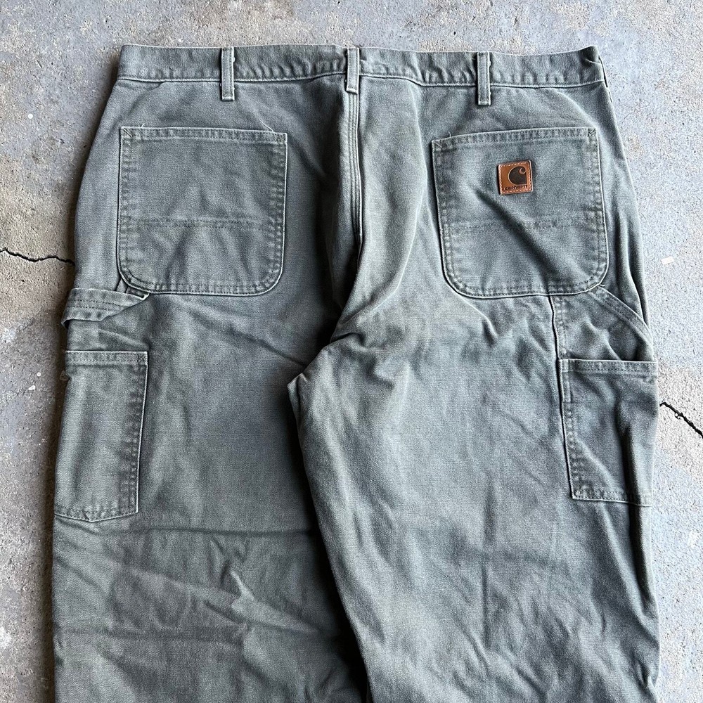 Vintage Y2K Carhartt flannel lined green work wear carpenter pants. Great pair! Nice and warm. Measure 38x33 and a 9.75 leg opening. Please check measurements before purchasing. I do my best to show any flaws in pictures. Quick shipping! Bundles encouraged! @ants_haul on Instagram. 443!!!