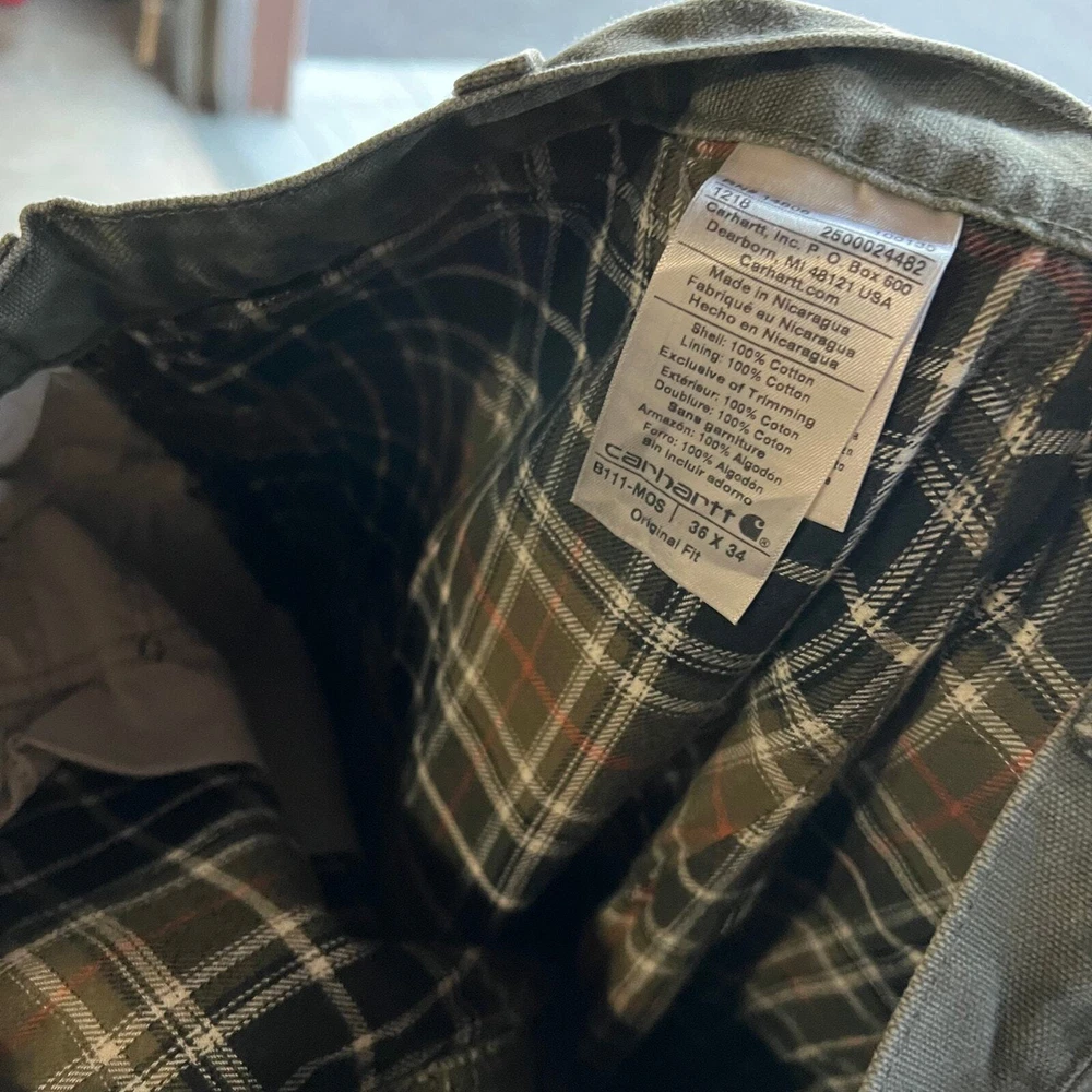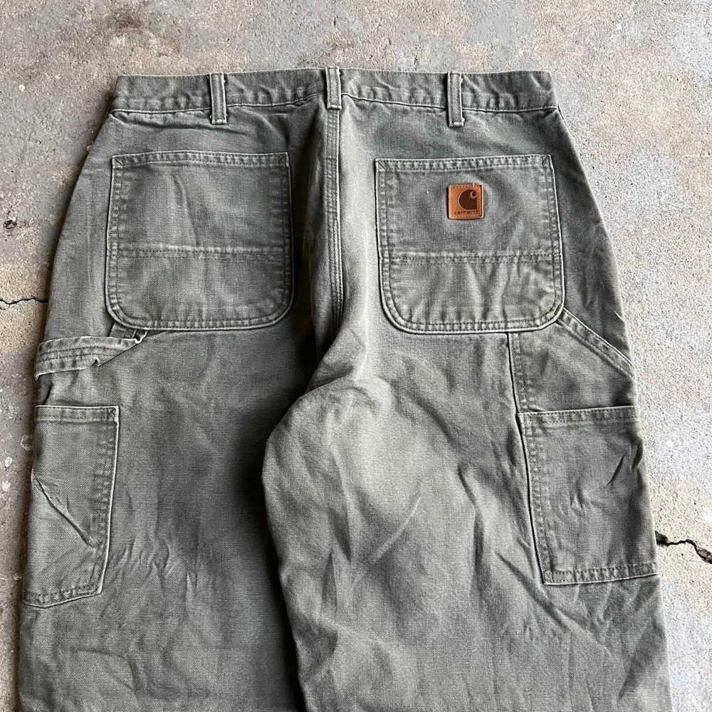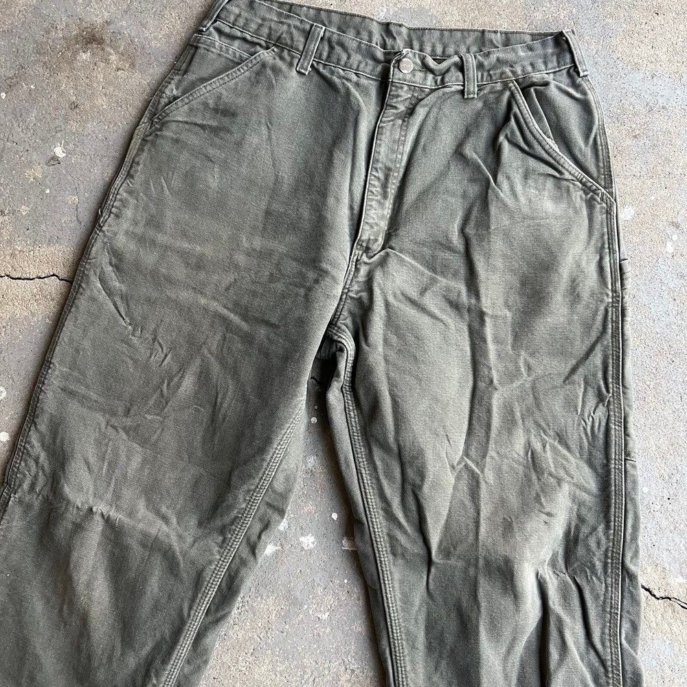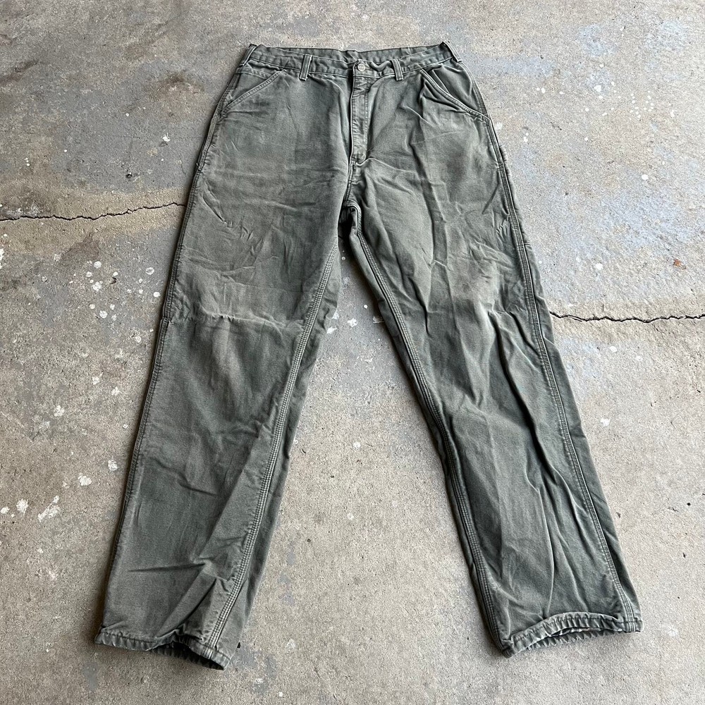 Vintage Y2K Carhartt green flannel lined work wear carpenter pants. Awesome pair. Measure 33x33 and a 9.25 leg opening. Please check measurements before purchasing. I do my best to show any flaws in pictures. Quick shipping! Bundles encouraged! @ants_haul on Instagram.