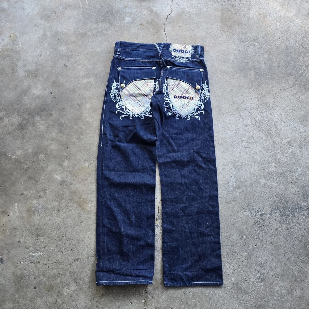 Vintage Y2K Coogi 90’s Baggy Hip Hop Skate Embroidered Flap Jeans Shirt Set In good vintage condition! Shirt; Size 3x A little cracking in graphic, please check out the photos Chest: 27 Length: 33 Pants: Size 34 x 34 Waist; 17 Length: 42 Inseam: 33