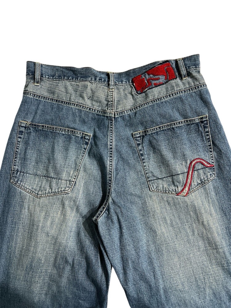 Vintage Y2K Drunkn Munky Jeans Men’s 38x33 Blue Denim Baggy Jnco Style Hip Hop Very good pre-owned condition. No holes, rips or stains; see pictures for measurements. We pre-wrap and inventory right after pictures, therefore no more measurements can be given. ATSBB
