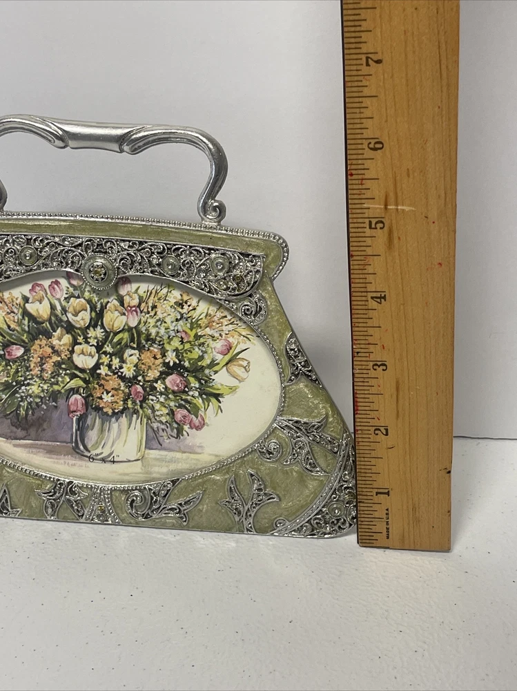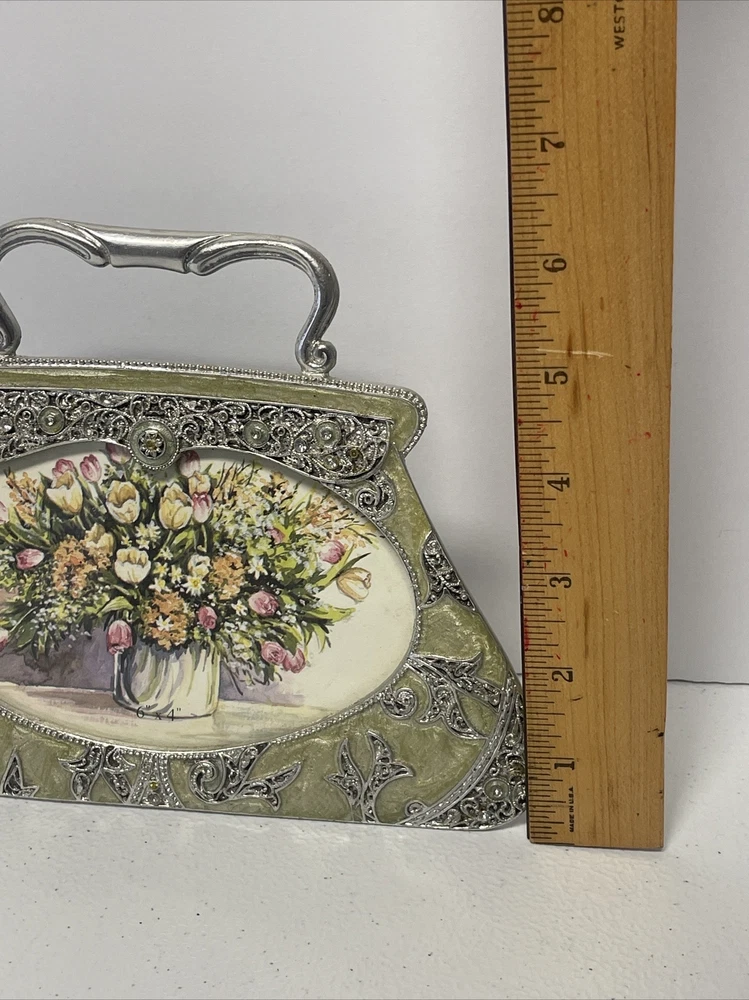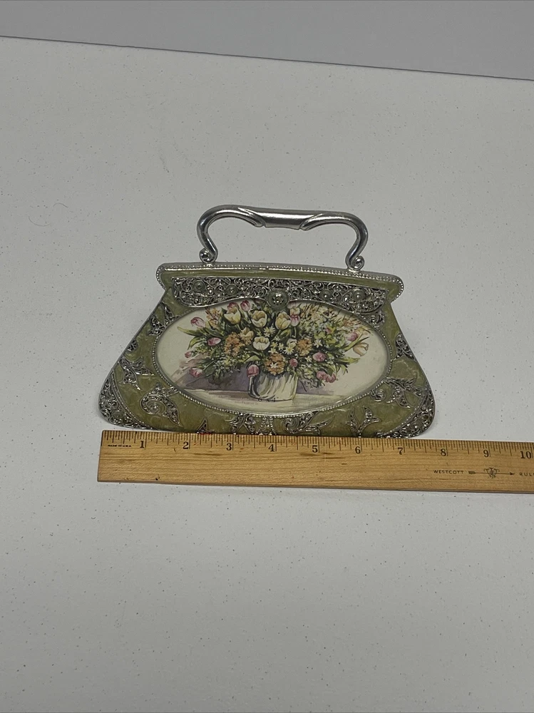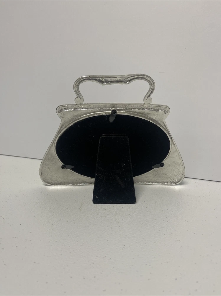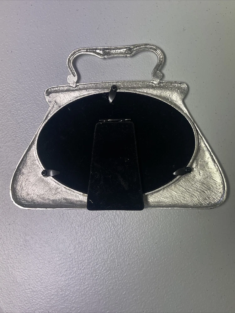 Vintage Y2K Handbag Purse Ornate Metal Photo Picture Frame Green Silver Oval