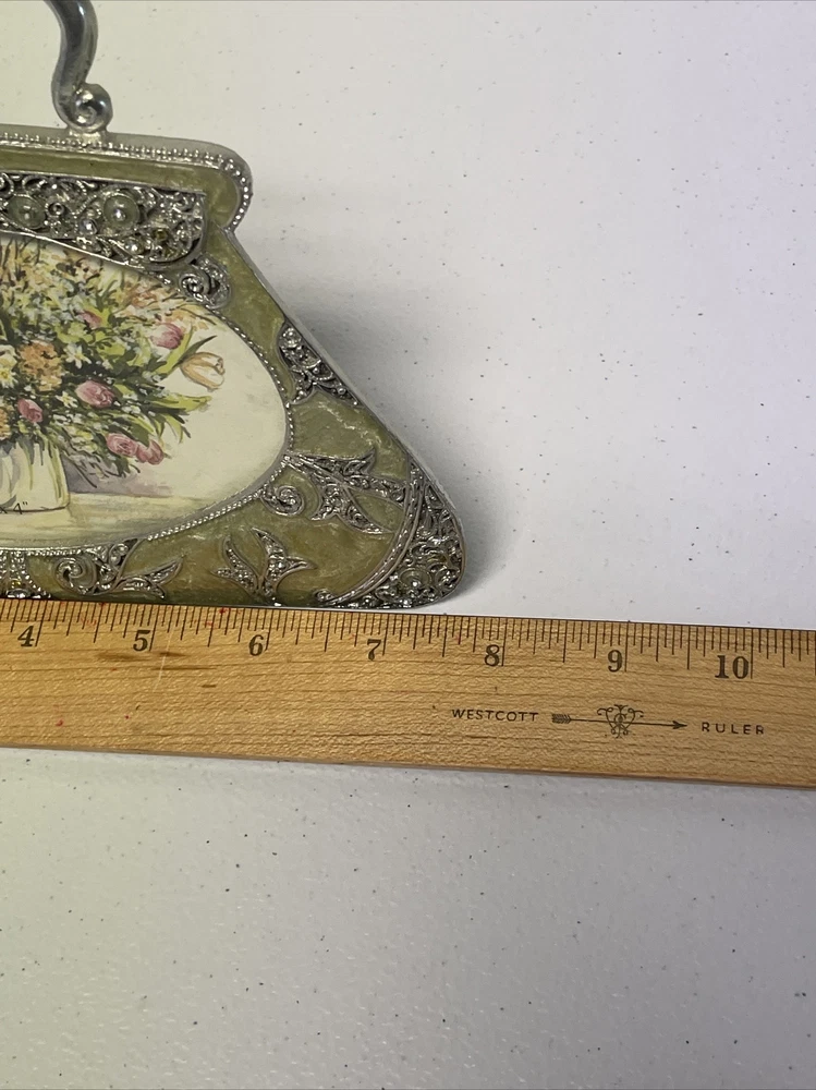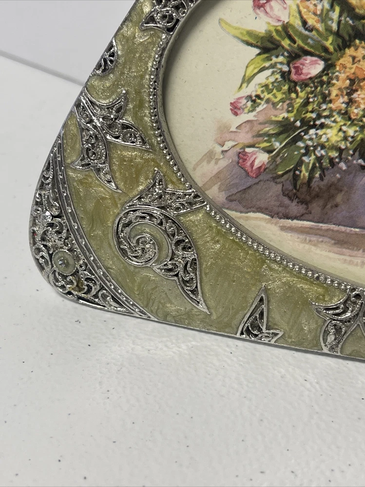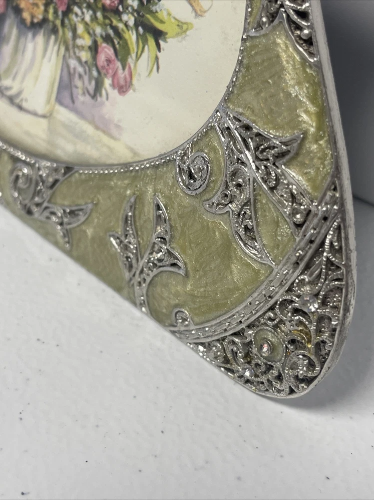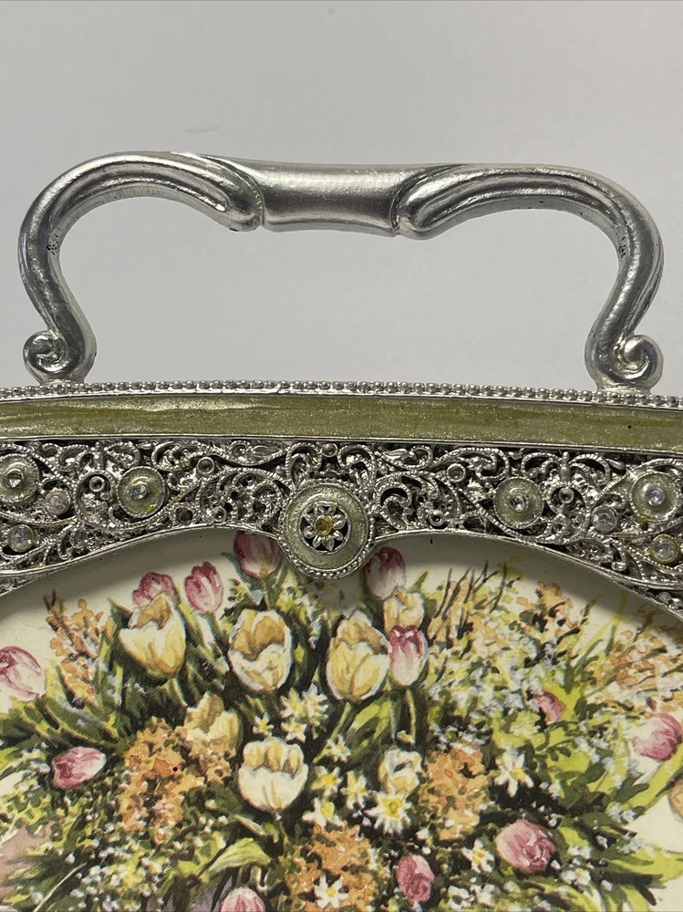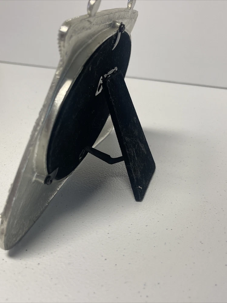 Vintage Y2K Handbag Purse Ornate Metal Photo Picture Frame Green Silver Oval
