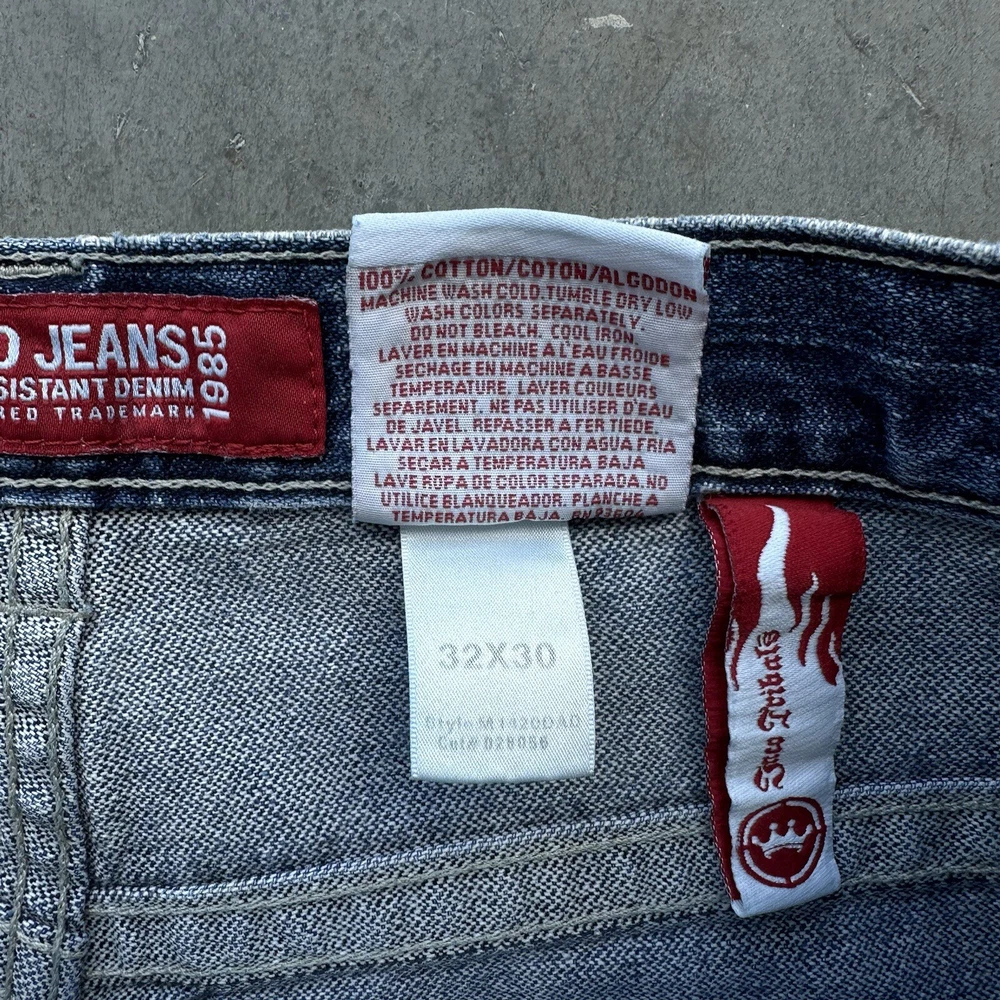Good condition besides light fading and distressing on leg openings Measurements : Waist : 31 inches (15.5 inches flat) NOT A 32 Inseam : 30 inches Leg opening : 10 inches Outseam : 40.5 inches Rise : 12.5 inches
