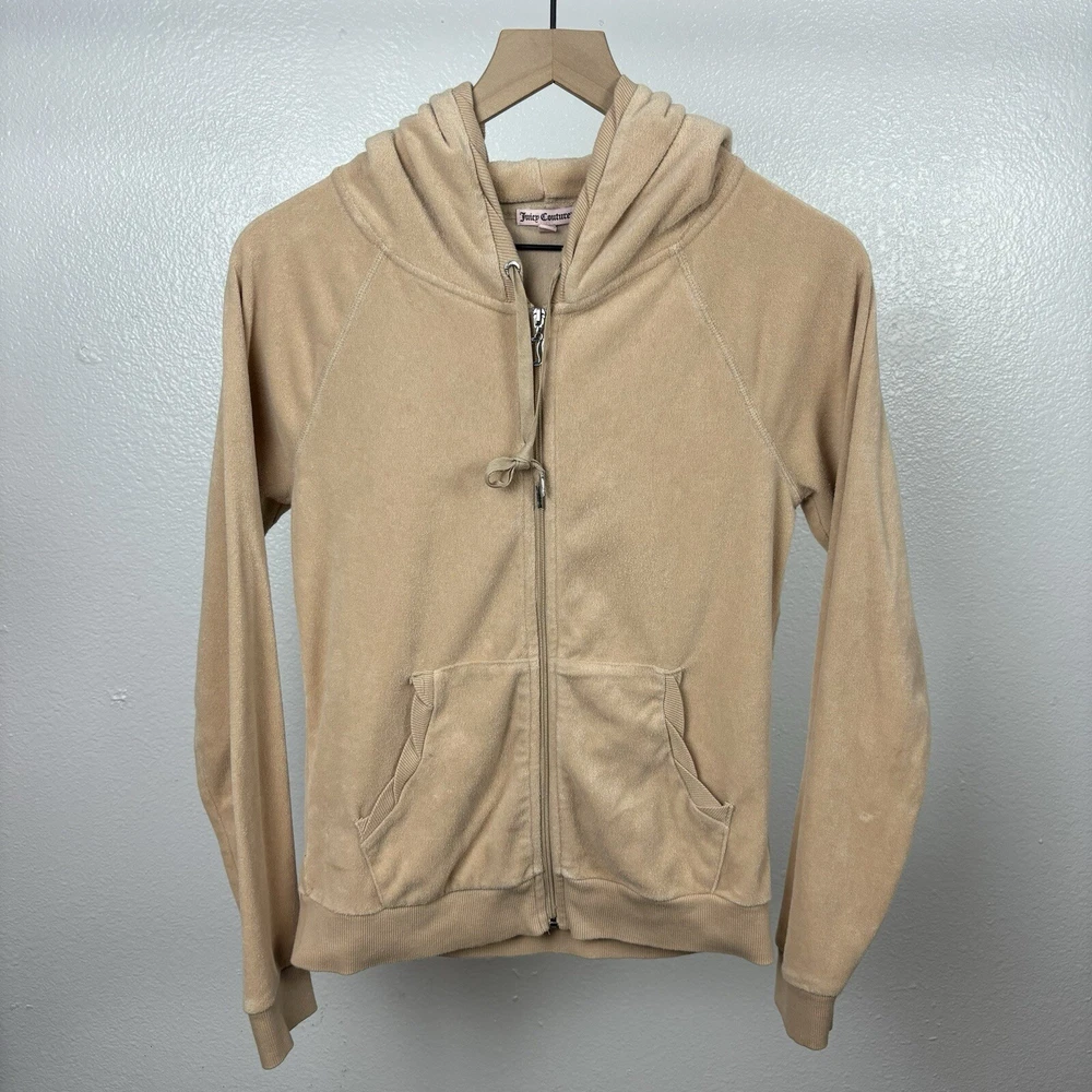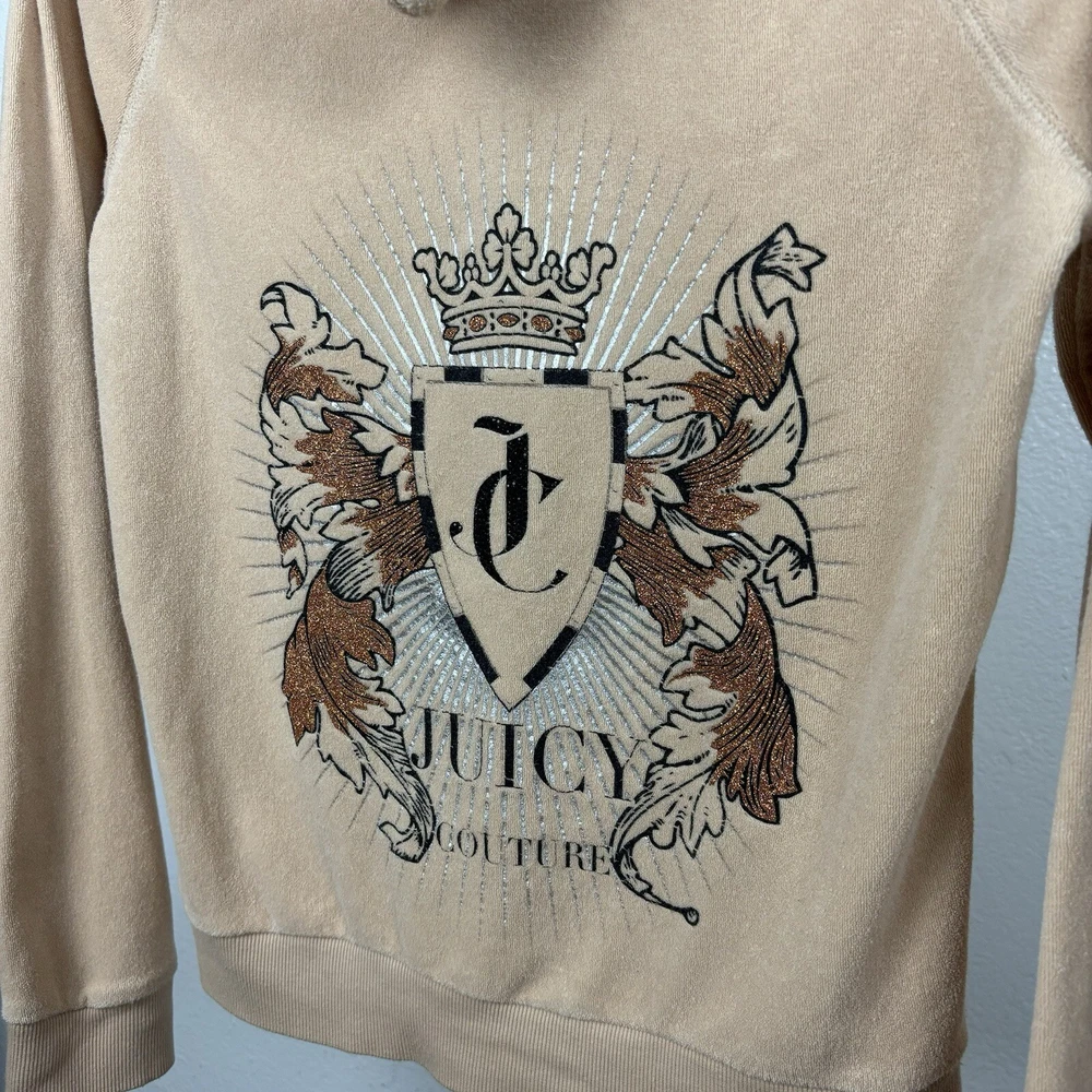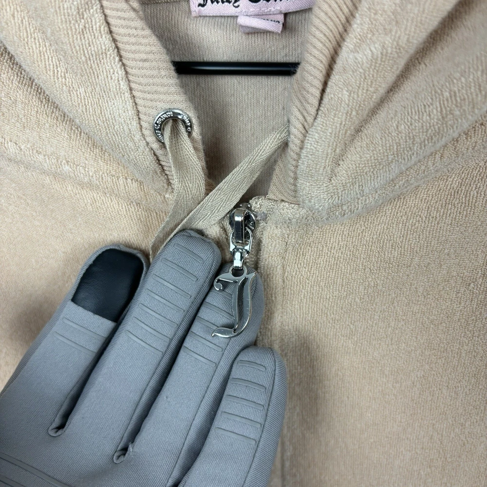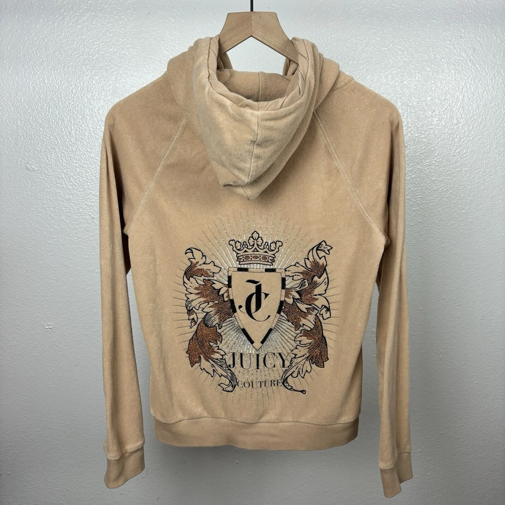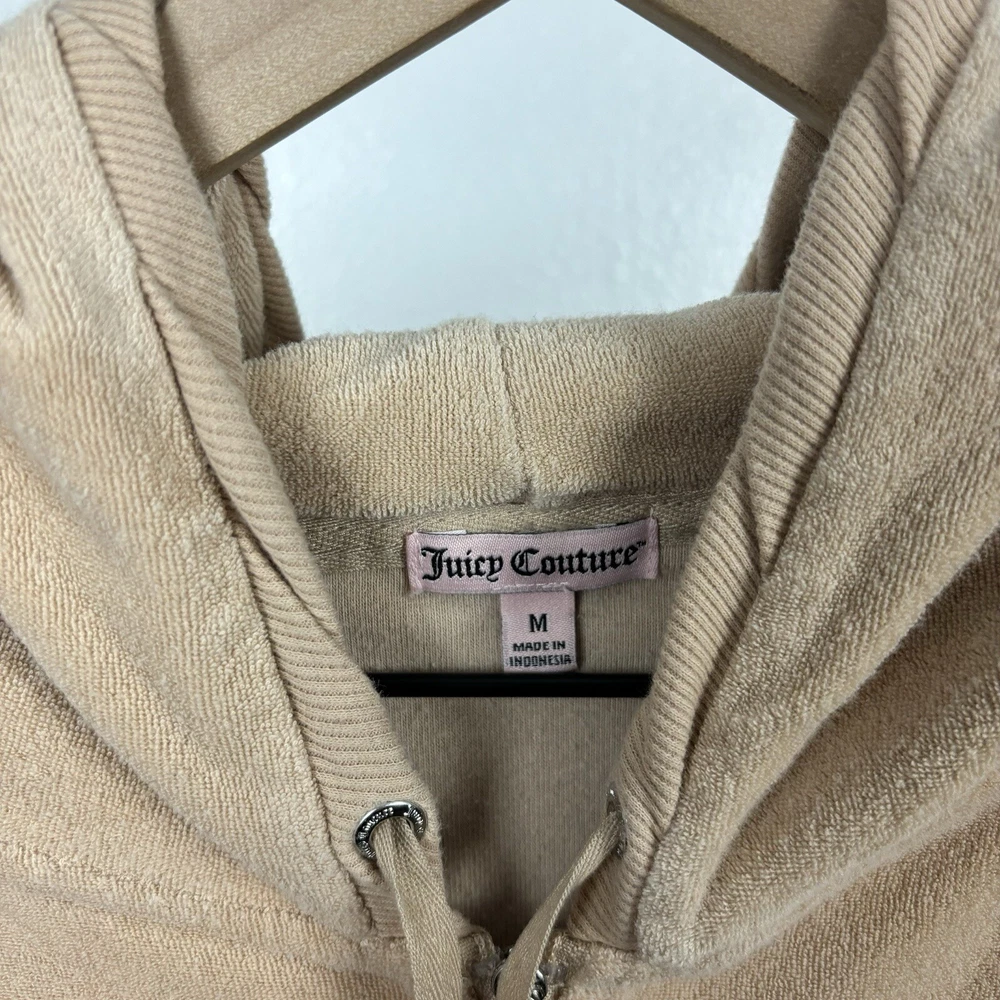 Vintage Y2K Juicy Couture Rhinestone Velour Hoodie Track Jacket Size Medium. Condition is Pre-owned. Shipped with USPS Ground Advantage.
