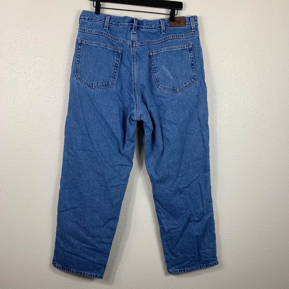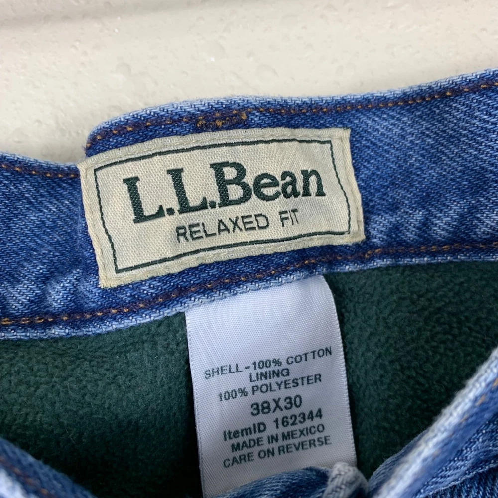 Vintage Y2K L.L. Bean Men’s Fleece Lined Jeans - Size 38x30 Great preowned condition! Fleece lined 5 pocket design Zip fly with button closure Half-waist: 18" Inseam: 28" Length: 40" Rise: 12" Measurements are lying flat, and estimates only. 1P35 3-7125 2 lb 5 oz Tags: retro, rugged, outdoor, warm, hiking,