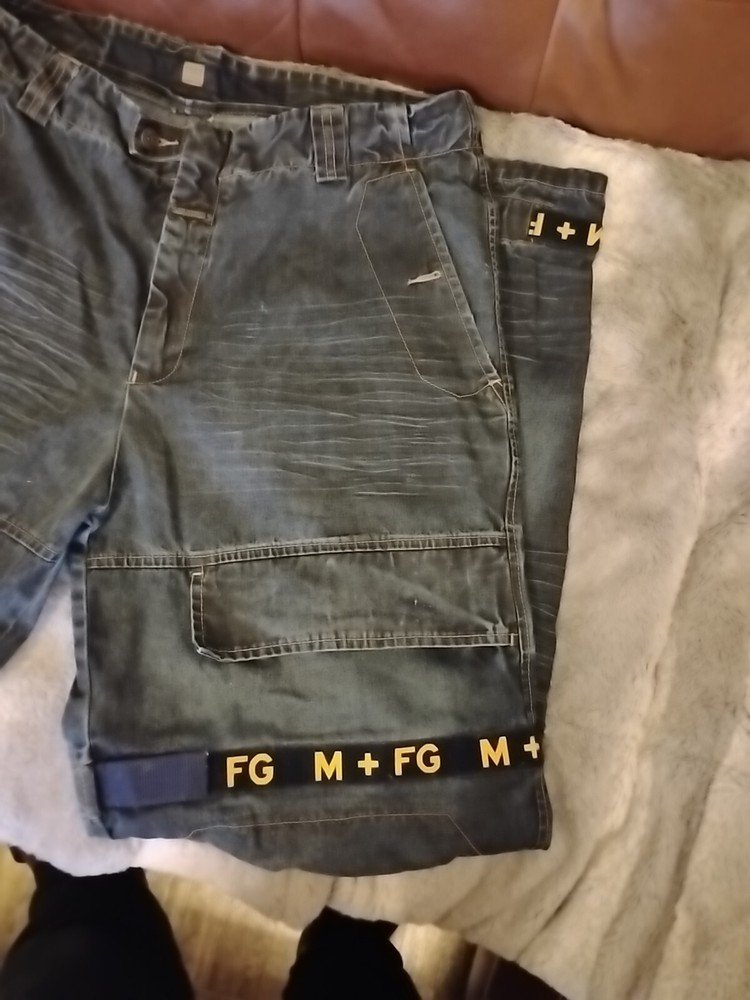Elevate your vintage wardrobe with these Marithe Francois Girbaud denim jeans. With a solid blue and gold color, these wide-leg jeans feature a relaxed fit and 6-pocket denim design. The closure is a zip, and it has accents such as buttons, straps, zipper, and logo. These Y2K Girbaud jeans are perfect for the grunge and 90s theme. Made of denim and cotton material, these jeans are easy to care for and offer comfort and pockets as features. The inseam is 34 inches, and the waist size is 38 inches, making it ideal for big and tall men. These jeans are machine washable in cold water only and should not be dried. Jeans have minor issues to write back leg refer to pictures for details, however these girbaud jeans are in excellent condition and a great addition to any fan of girbaud and the 1990s grunge style of America. These are shipped from us to us. Thank you for your interest.