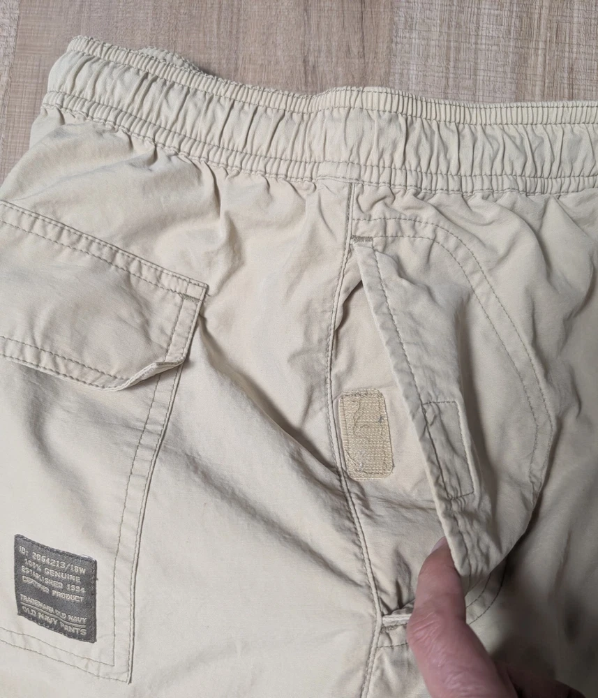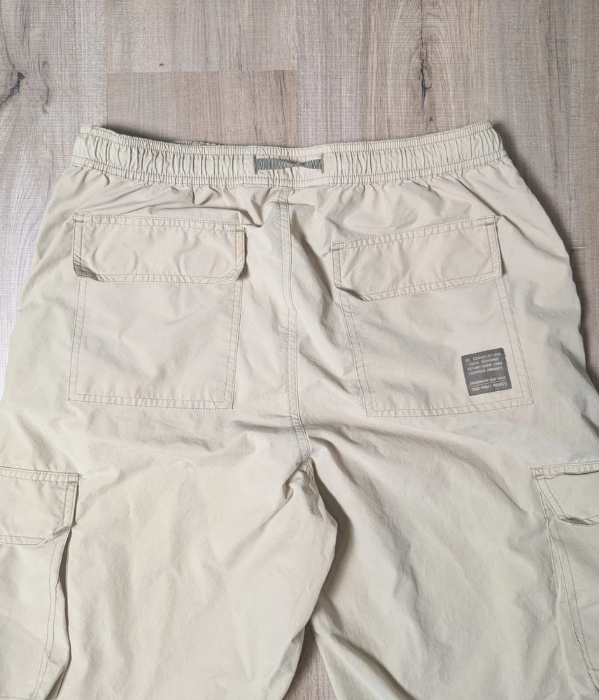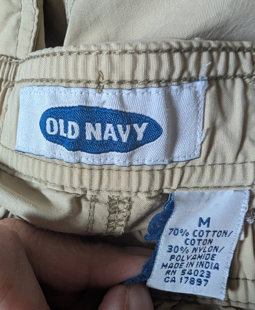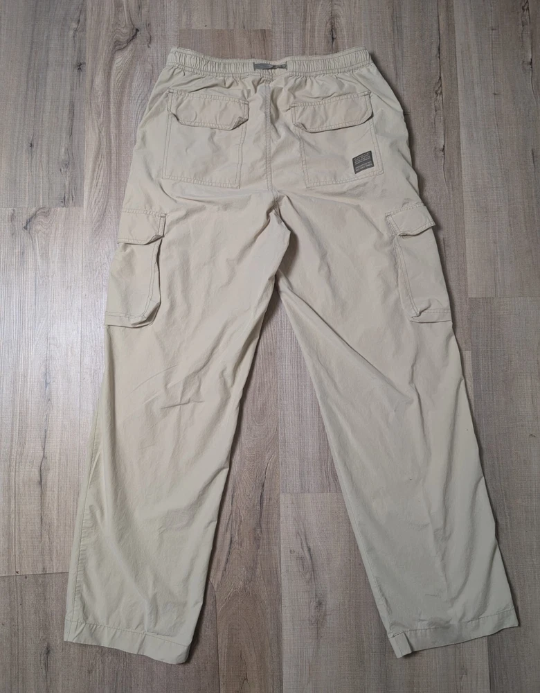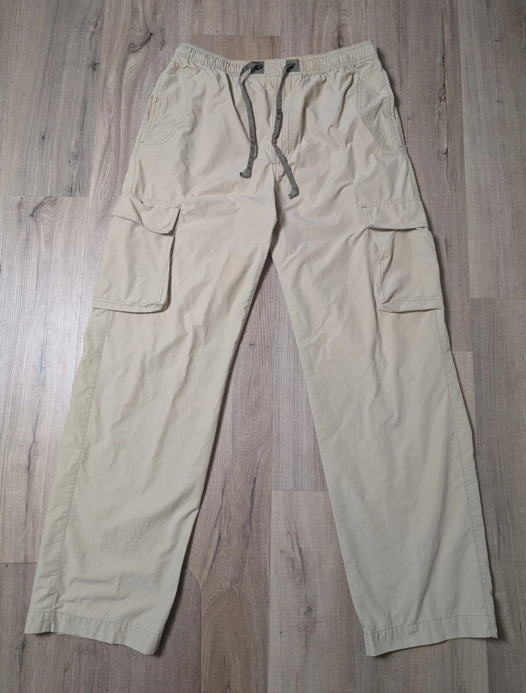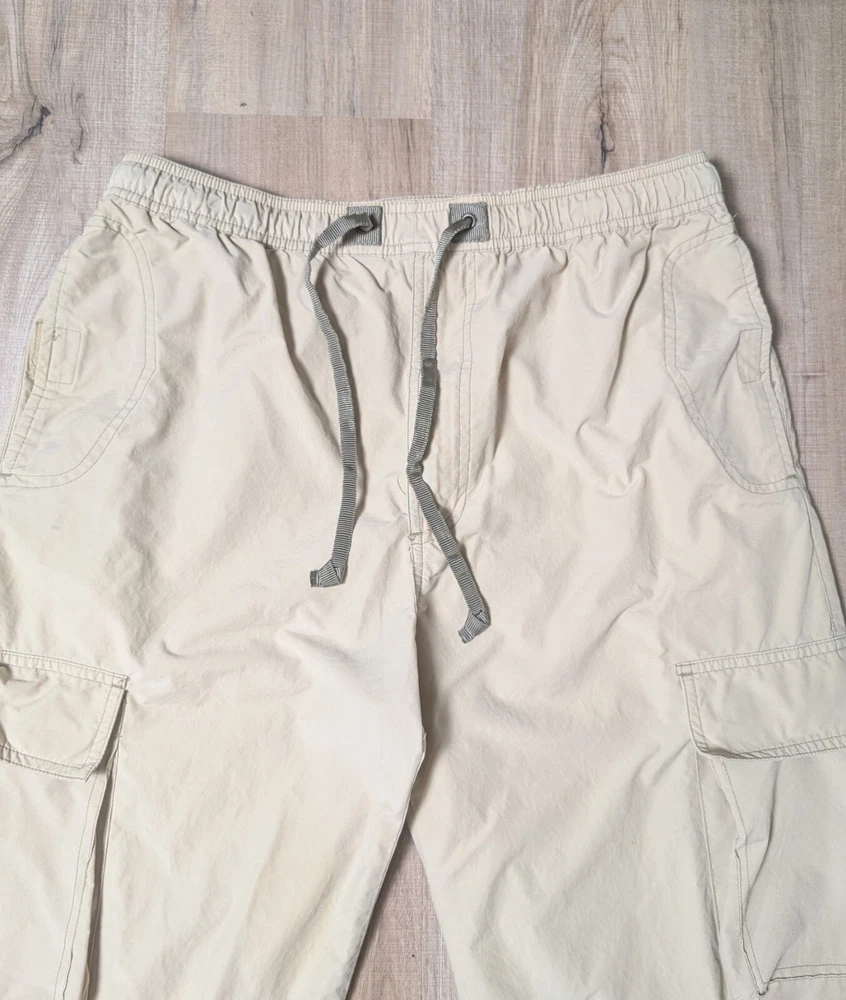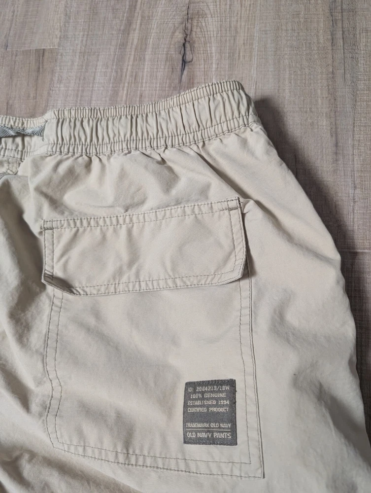 Vintage in good condition. Please see pictures for details and measurements laying flat. NOTE: A couple of tiny spots shown in the last two pics. Discover the perfect blend of utility and style with these Vintage Y2K Old Navy Men's Cargo Pants. Embracing a relaxed fit, these pants feature a versatile beige color that effortlessly complements any top for a casual workwear or travel outfit. The cargo pocket design is ideal for keeping essentials within reach, while the combination of drawstring and zip closures ensures a secure and adjustable fit. Crafted from a durable mix of cotton and nylon, these pants promise comfort and ease of care, being machine washable and lightweight. The straight-leg style with a flat front and elastic waistband embodies the skater and outdoor themes of the 90s and Y2K era, making it a timeless addition to your streetwear collection. Whether you're out for a casual stroll or tackling the day's tasks, these pants are designed to keep up with your every move.