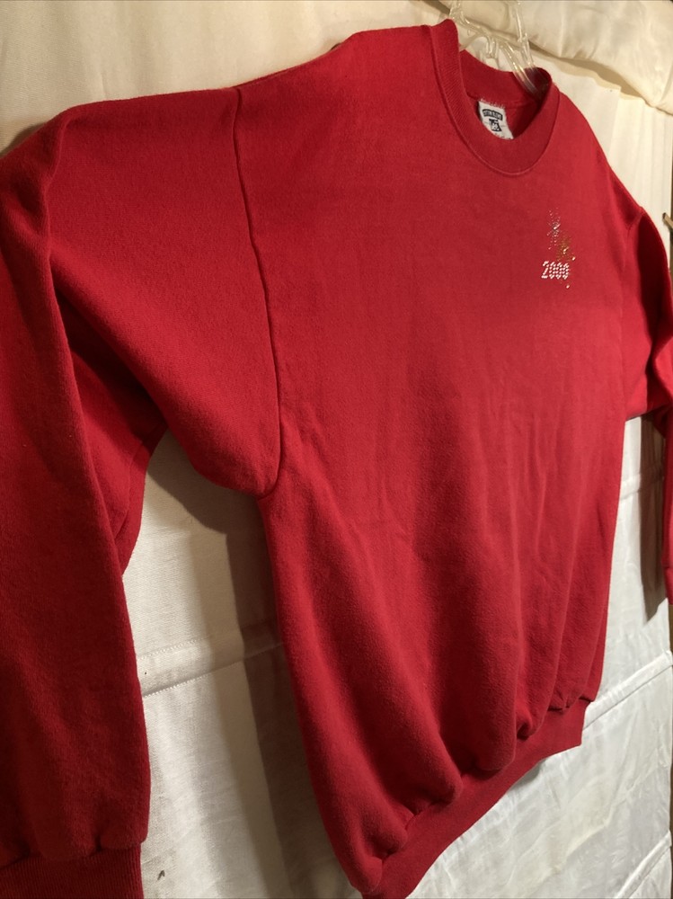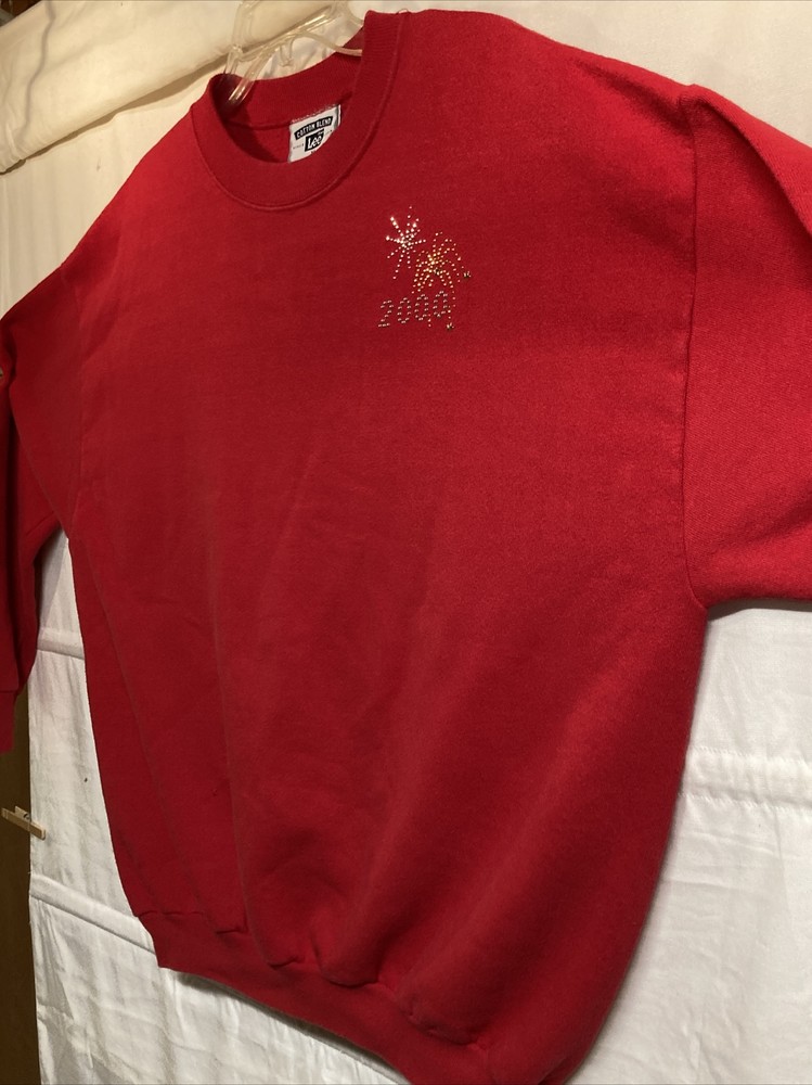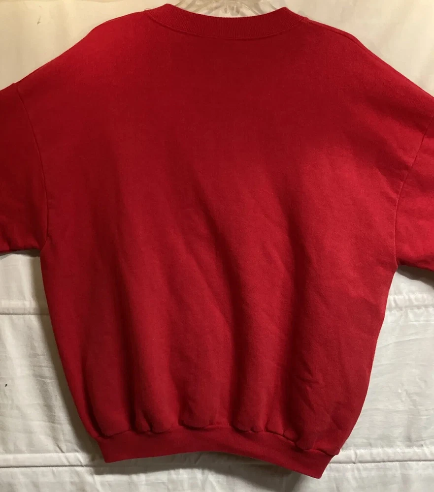 This vintage Lee sweatshirt is a perfect addition to any retro wardrobe. The red color and embroidered accents make it stand out, while the fleece fabric ensures comfort during the fall, winter, and spring seasons. The pullover style with a crew neck and long sleeves is perfect for both gym and training sessions and outdoor activities like walking, riding, hunting, and hiking. This Y2K sweatshirt, made of a blend of polyester and cotton, is machine washable for easy care. It comes in size XL and a regular fit, making it suitable for men of all sizes. The solid pattern and punk, grunge, and retro theme add a unique touch to your look. Don't miss out on this one-of-a-kind Lee sweatshirt!